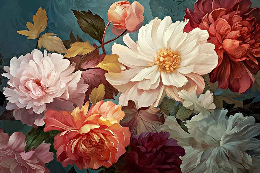 Premena priestoru môže byť rovnako osviežujúca ako jar po dlhej zime a táto nástenná maľba “Živé kvety v jemných farbách” to dokáže. Predstavte si to – množstvo jemných pivoniek a ruží, ktoré prekypujú životom a pozývajú radosť do každej miestnosti. Jemné rúže a žiarivé odtiene vytvárajú atmosféru, ktorá pôsobí útulne a povznášajúco. Predstavte si, ako sa usadíte do kresla s dobrou knihou a kvety vám takmer šepkajú príbehy letných večerov. Je to ako mať tajnú záhradu priamo na stene, vďaka ktorej je každý pohľad malým únikom do prírody, ktorý je príliš krásny na to, aby ste mu odolali. Ideálne na premenu nudného kúta na veselé útočisko!