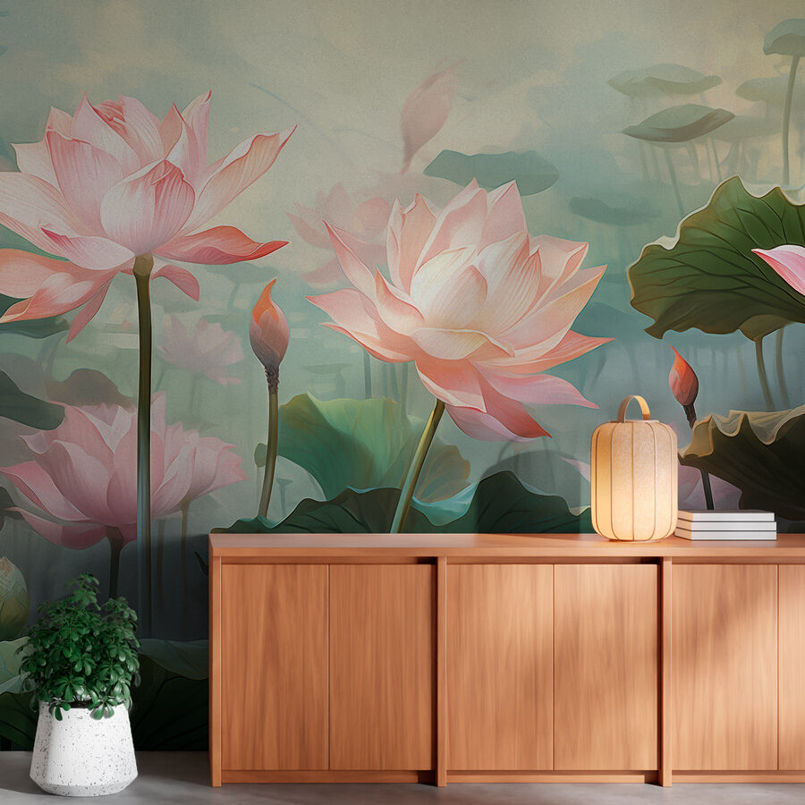Premeňte akúkoľvek miestnosť na pokojnú oázu s touto úžasnou nástennou maľbou s nádhernou skupinou ružových kvetov uložených medzi sviežimi zelenými listami. Predstavte si, že vstúpite do svojho priestoru a pocítite, ako vás okamžite ovalí pokoj – ako jemný vánok počas teplého dňa. Mäkké odtiene a jemné detaily nabádajú k pocitu pokoja, vďaka čomu sa dokonale hodia do útulného čitateľského kútika alebo aj do živej kuchyne.