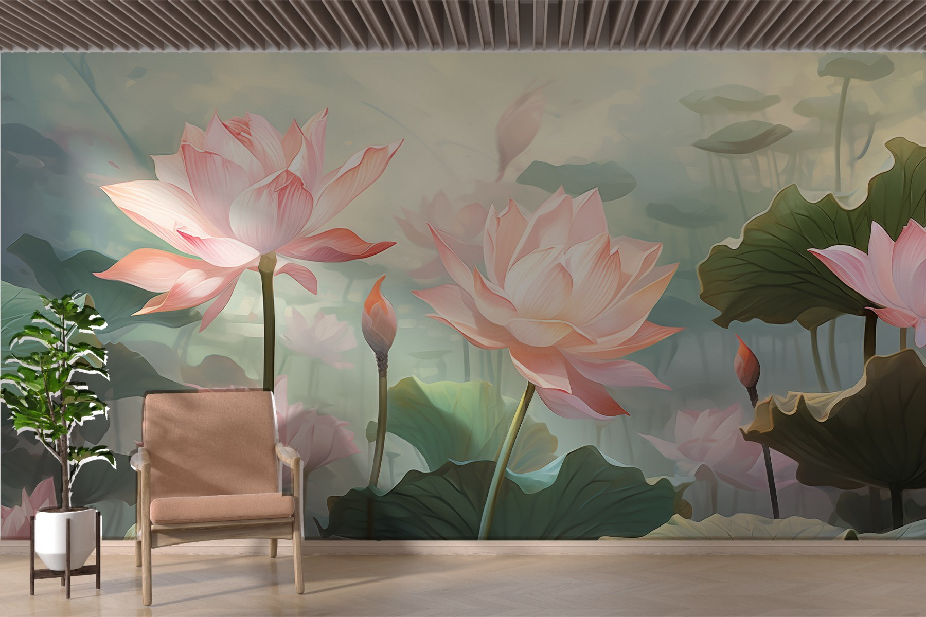 Premeňte akúkoľvek miestnosť na pokojnú oázu s touto úžasnou nástennou maľbou s nádhernou skupinou ružových kvetov uložených medzi sviežimi zelenými listami. Predstavte si, že vstúpite do svojho priestoru a pocítite, ako vás okamžite ovalí pokoj – ako jemný vánok počas teplého dňa. Mäkké odtiene a jemné detaily nabádajú k pocitu pokoja, vďaka čomu sa dokonale hodia do útulného čitateľského kútika alebo aj do živej kuchyne.