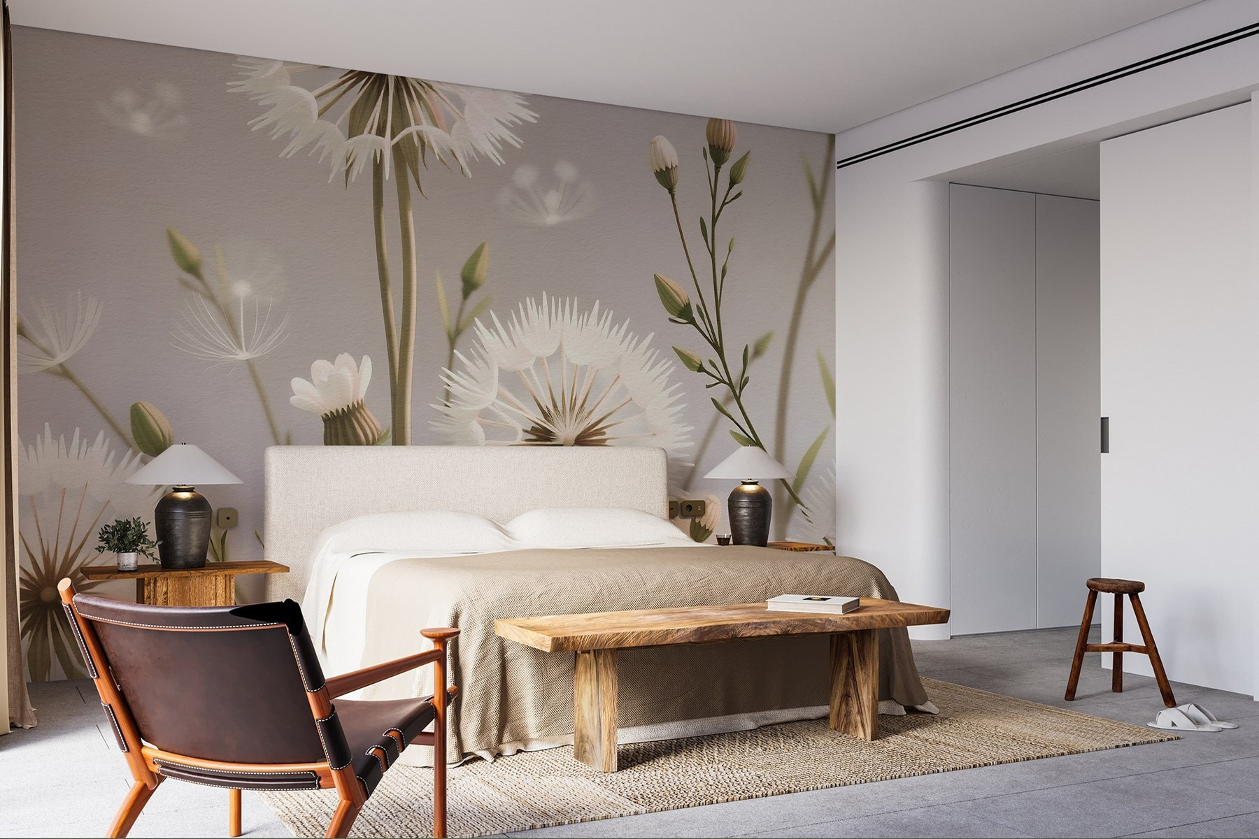 Premeňte svoj priestor pomocou nástennej maľby “Jemné kvety v jemnej palete”. Tento krásny dizajn prináša do interiéru nádych prírody, pričom obsahuje krásne púpavy a nežné kvety. Predstavte si, že sa zobudíte a privíta vás toto upokojujúce umelecké dielo – je to ako jemný šepot zo záhrady!
