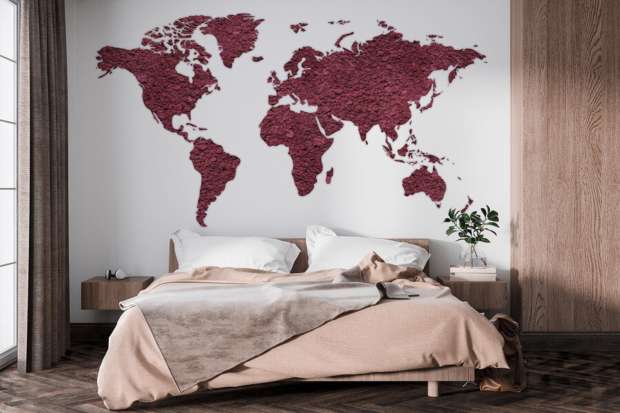 S nástennou maľbou “Mapa sveta” premeníte svoj priestor na dobrodružnú cestu okolo sveta. Táto úžasná nástenná maľba nie je len mapou, ale aj podnetom na rozhovor. Predstavte si, ako sa okolo nej zhromažďujú priatelia, ukazujú na miesta, na ktorých boli – alebo snívajú o tom, že ich navštívia – a popíjajú pritom kávu a zdieľajú príbehy z ciest. Sýte farby dodajú teplo každej miestnosti, vďaka čomu sa v nej budete cítiť útulne a príjemne. Navyše každý pohľad na túto nástennú maľbu môže vyvolať trochu túžby po cestovaní. Vyberte si miesto na mape, nasmerujte svojho vnútorného objaviteľa a nechajte svoju fantáziu putovať. Ideálna do obývačky, kancelárie alebo kamkoľvek, kde sa chcete cítiť inšpirovaní – táto nástenná maľba je ako vstupenka všade bez toho, aby ste museli opustiť domov.