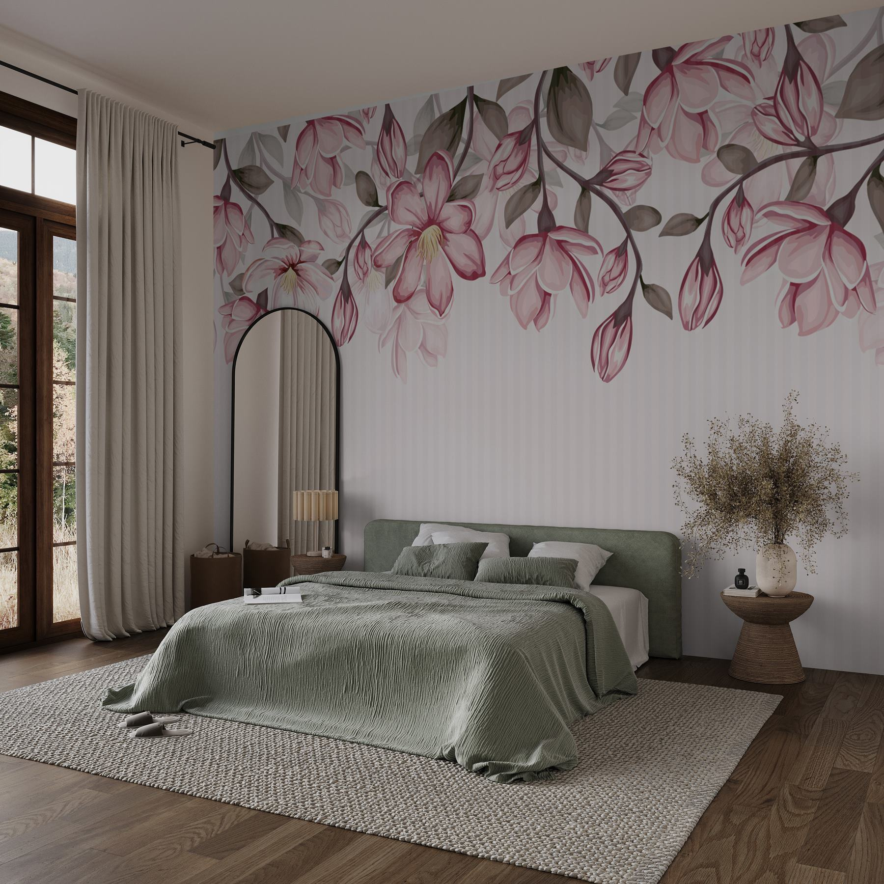 Premeňte akúkoľvek miestnosť na pokojnú svätyňu s touto úžasnou nástennou maľbou ružových kvetov na jemnom bielom pozadí. Predstavte si, že vojdete do svojho priestoru a okamžite sa budete cítiť ako v pokojnej japonskej záhrade – bez toho, aby ste si museli baliť kufre. Jemné kvety takmer tancujú po stene a pozývajú na teplo a veselosť. Ideálne pre útulný čitateľský kútik alebo kdekoľvek, kde by sa hodil závan krásy prírody. Navyše, len sa pozrite na tie jemné odtiene! Možno vás inšpirujú k spontánnej šálke čaju alebo chvíľke tichého rozjímania. Kto by povedal, že dekorácie na stenu môžu pôsobiť tak sviežo?