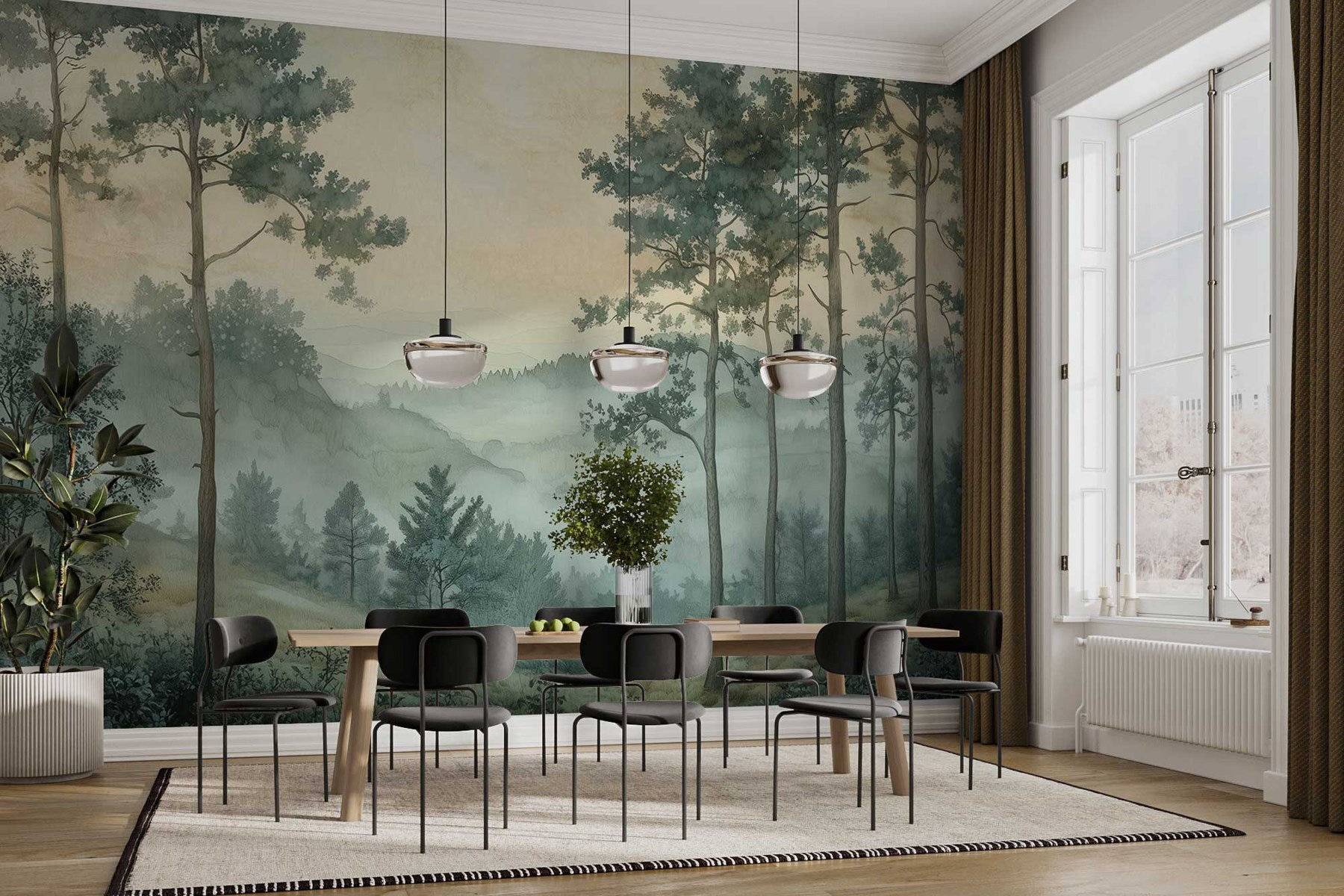 Predstavte si, že vstúpite do pokojného lesa zahaleného do jemnej hmly – táto nástenná maľba je presne taká! Vďaka sviežim stromom a zasnenej krajine prinesie kúsok prírody priamo do vášho domova. Perfektne sa hodí do útulných zákutí alebo otvorenejších priestorov, ktoré túžia po trochu pohodovej atmosfére. Kto potrebuje dovolenku, keď vám stena môže našepkávať tajomstvá lesných chodníkov? Každý pohľad môže evokovať tú pokojnú túru, doplnenú jemným šumením lístia. Premeňte svoju izbu na pokojné útočisko a cíťte sa, akoby ste mali veľkú prírodu na dosah ruky – bez spreja proti hmyzu!