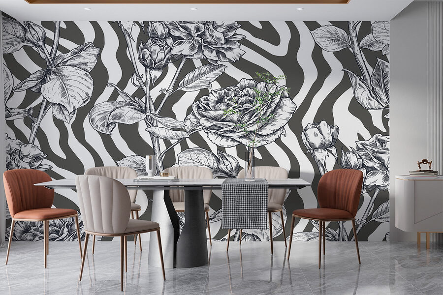Premeňte svoje steny na úžasnú vizuálnu slávnosť s touto čiernobielou nástennou maľbou ruží. Je to ako mať záhradu, ktorá nikdy nezvädne, bez zalievania a občasného hmyzu. Jemné kvety tancujú na elegantnom pruhovanom pozadí a dodávajú mu trochu ostrosti bez toho, aby to preháňali. Predstavte si, že popíjate rannú kávu alebo sa chúlite do klbka s knihou, a pritom ste obklopení touto elegantnou kvetinovou krásou. Či už ide o útulnú obývačku alebo štýlovú kanceláriu, táto nástenná maľba prináša nádych prírodného šarmu s moderným nádychom. Je ideálna pre každého, kto túži po troche osobitosti – nevyžaduje zelené palce!