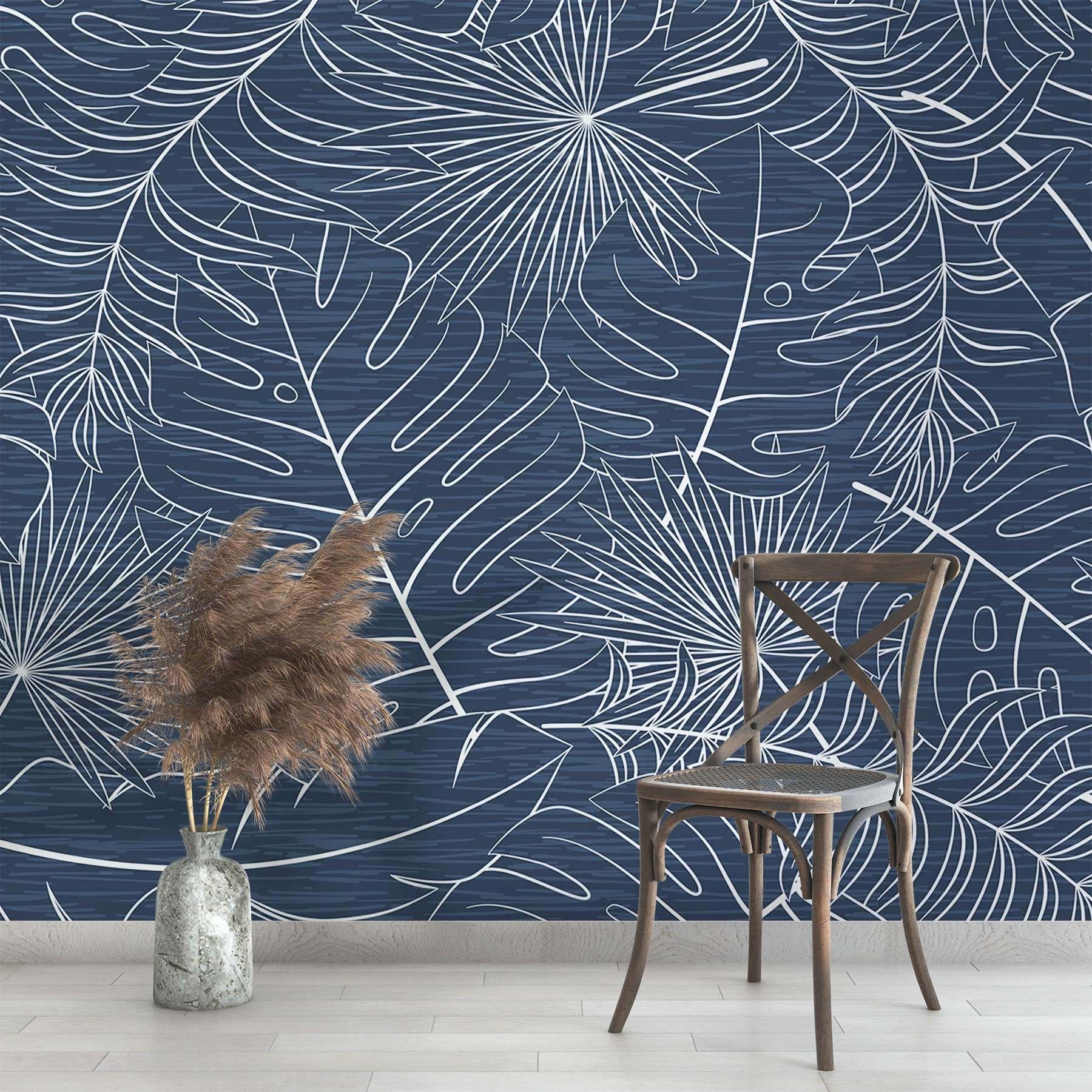 Premeňte svoj priestor pomocou tejto žiarivej nástennej maľby so vzorom listov na upokojujúcom modrom pozadí. Je to ako pozvať si kúsok trópov priamo k vám domov – nie je potrebný pas! Len si predstavte, že sa schúlite do klbka s dobrou knihou, obklopení týmito sviežimi, hravými listami, ktoré akoby sa takmer kolísali s vetrom. Jemné biele obrysy tohto dizajnu dodávajú sviežu atmosféru, vďaka ktorej sa každá miestnosť bude cítiť vzdušne a príjemne. Ideálne sa hodí do útulného čitateľského kútika alebo do živého obývacieho priestoru a prináša do interiéru nádych prírody. Či už sa chcete stať vnútorným botanikom, alebo len túžite po osobnostnom vzhľade, táto nástenná maľba vám pomôže. Kto by povedal, že lístie môže pôsobiť tak osviežujúco?