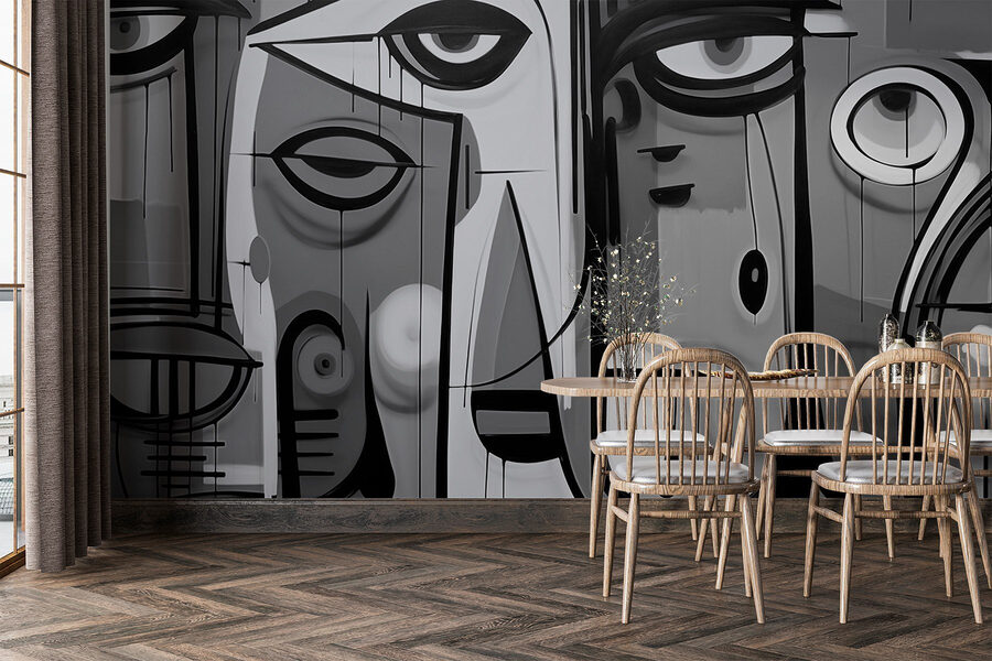 Premeňte svoj priestor pomocou tejto výraznej čiernobielej nástennej maľby s podmanivými tvárami, ktoré akoby nazerali do vášho sveta. Je to ako rozhovor s umením – plný emócií a intríg. Predstavte si to: vojdete do svojej izby a bác! Tieto výrazné tváre vás vtiahnu dovnútra, vzbudia vo vás zvedavosť a možno aj úsmev. Perfektne sa hodia do obývačky alebo kreatívneho zákutia, pretože dodávajú vrstvu hĺbky bez toho, aby sa všetky farby uchádzali o pozornosť. Navyše je to fantastický lámací nástroj pre každého, kto sa zastaví. Kto by nechcel uvažovať o príbehoch, ktoré sa skrývajú za týmito intenzívnymi pohľadmi? Dokonale moderné a bez námahy elegantné!
