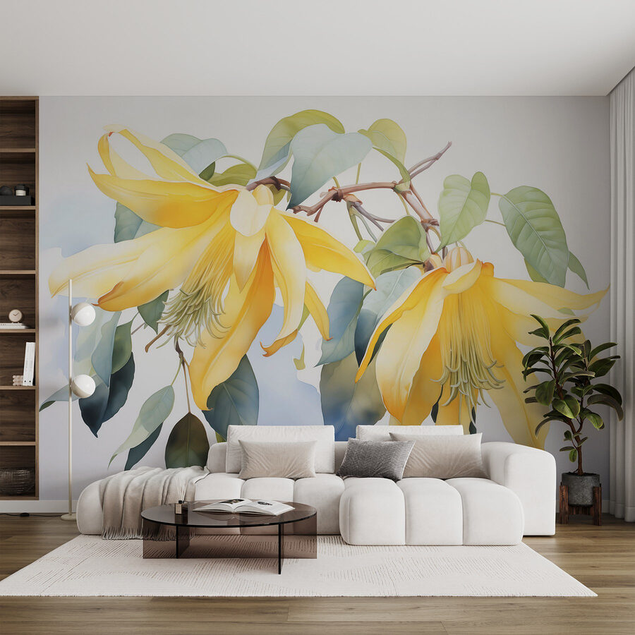 Rozžiarte každú miestnosť veselou atmosférou nástennej maľby “Žlté kvety na vetve”. Predstavte si, že sa každý deň budíte s týmito slnečnými kvetmi – ako malý kúsok prírody priamo u vás doma. Perfektne sa hodí do obývačky, kuchyne alebo do toho útulného čitateľského kútika, kde popíjate rannú kávu a obdivujete svoje umelecké rozhodnutia. Jemné farby a pôvabné listy vytvárajú pokojnú atmosféru, vďaka ktorej je ťažké neusmievať sa. Je to ako priniesť kúsok jari do interiéru, a kto nepotrebuje do svojho života viac radosti? Živý pôvab tejto nástennej maľby dokáže premeniť aj tú najnudnejšiu stenu na botanické majstrovské dielo, ktoré vyvolá rozhovory a komplimenty. Takže smelo do toho, dajte svojmu priestoru nádych prírody – je to len spôsob, ako stena hovorí: “Urobme život trochu jasnejším!”