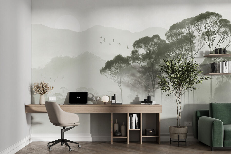 Premeňte svoj priestor pomocou očarujúcej nástennej maľby “Vtáky letia nad stromami”. Predstavte si, že vstúpite do hmlistého rána, kde sa jemné odtiene zelenej pohrávajú s jemnou sivou a vytvárajú pokojné pozadie pre zasnené chvíle. Je to, akoby príroda pošepkala vašej izbe tajomstvo! Predstavte si to – keď sa zobudíte a privítajú vás tieto vznášajúce sa vtáky, akoby vás pozývali, aby ste sa pridali k ich letu. Táto nástenná maľba sa bez námahy spája s útulným interiérom, takže je dokonalým únikom bez toho, aby ste museli opustiť domov. Navyše, kto by nemiloval upokojujúcu atmosféru lesa, však? Či už dodá teplo čitateľskému kútiku, alebo vdýchne život nudnej chodbe, určite inšpiruje k malému putovaniu. Smelo do toho, nechajte svoje steny vyjadriť lásku k prírode!