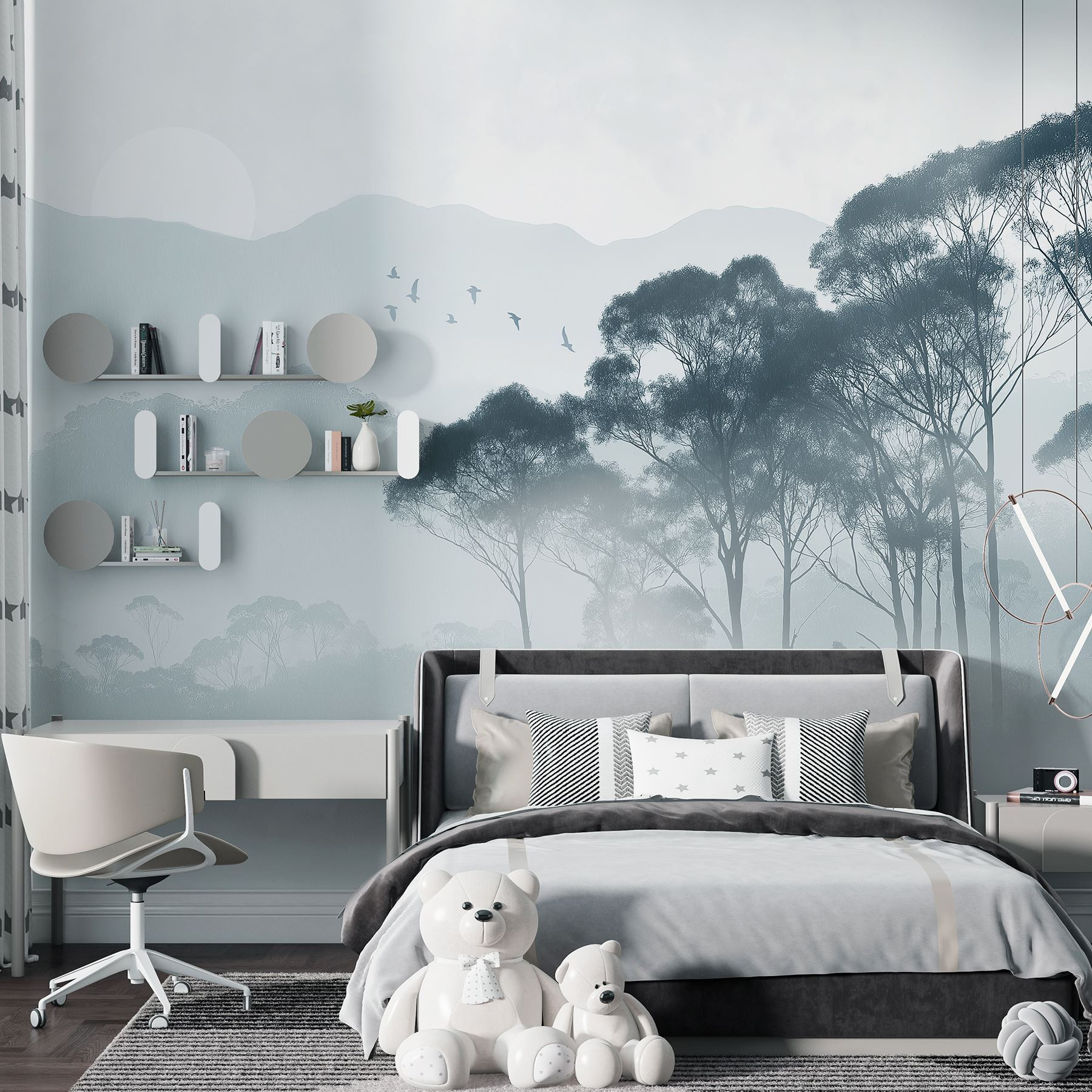 Premeňte každú miestnosť pomocou tejto očarujúcej nástennej maľby zobrazujúcej zasnený les plný hmly. Predstavte si, že sa každé ráno prebúdzate obklopení jemnými siluetami stromov, ktoré si šepkajú tajomstvá, keď sa kolíšu v jemnom vánku. Tlmené tóny navodzujú pocit pokoja, ako na útulnej rannej prechádzke prírodou. Tento dizajn si kradne pozornosť bez toho, aby bol okázalý – ideálny pre tých, ktorí chcú vo svojom priestore nádych pokoja. Navyše, viete si predstaviť, ako sa pred ním krútite s dobrou knihou? Je to ako preniesť do interiéru prírodu bez hmyzu. Krásny únik vás čaká vždy, keď vstúpite do miestnosti.
