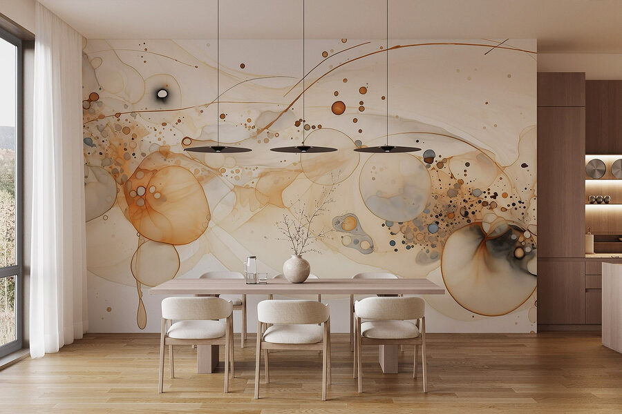 Premeňte svoj priestor s upokojujúcimi vibráciami “Abstraktných tvarov v jemných odtieňoch”. Táto fototapeta je ako jemný šepot v hlučnom svete – jemné stopy a jemné bublinky tancujú po stene a premenia každú miestnosť na oázu. Predstavte si, že po jej zavesení vykročíte späť a budete mať pocit, akoby ste práve vplávali do pokojnej kaviarne, ale v pohodlí svojho domova. Zemité tóny vytvárajú útulnú atmosféru, ktorá je ideálna na schúlenie sa s dobrou knihou alebo na zdieľanie smiechu s priateľmi. Nie je to len dekorácia, je to malý kúsok pokoja, ktorý vám zlepší náladu a povzbudí kreativitu. Kto by povedal, že nástenné umenie môže pôsobiť ako hrejivé objatie?