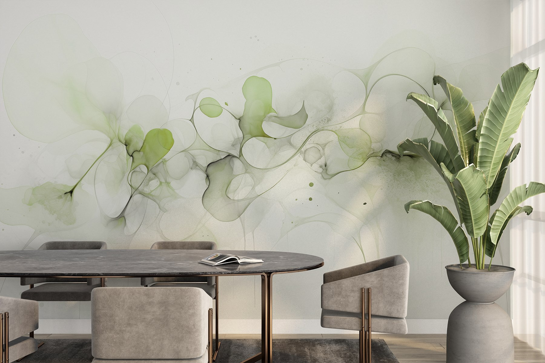 Premeňte akýkoľvek priestor pomocou nástennej maľby “Plynulé vzory v jemných zelených odtieňoch”. Je to, akoby sa sama príroda rozhodla usporiadať akvarelovú párty na vašej stene! Predstavte si, že vojdete do miestnosti a bác – privíta vás jemná zeleň, ktorá pôsobí ako nežné objatie. Táto nástenná maľba jemne pulzuje energiou a vyzýva k pokoju a tvorivosti. Perfektne sa hodí do útulného čitateľského kútika alebo na tú zvláštne holú stenu, ktorá si priam žiada nejaký charakter. Možno vás dokonca podnieti k snívaniu o slnečných lúkach alebo lenivých popoludniach pri tichom potoku. Je to viac než len dekor, je to zážitok, atmosféra. Nechajte upokojujúce farby našepkať relaxáciu do vášho domova!