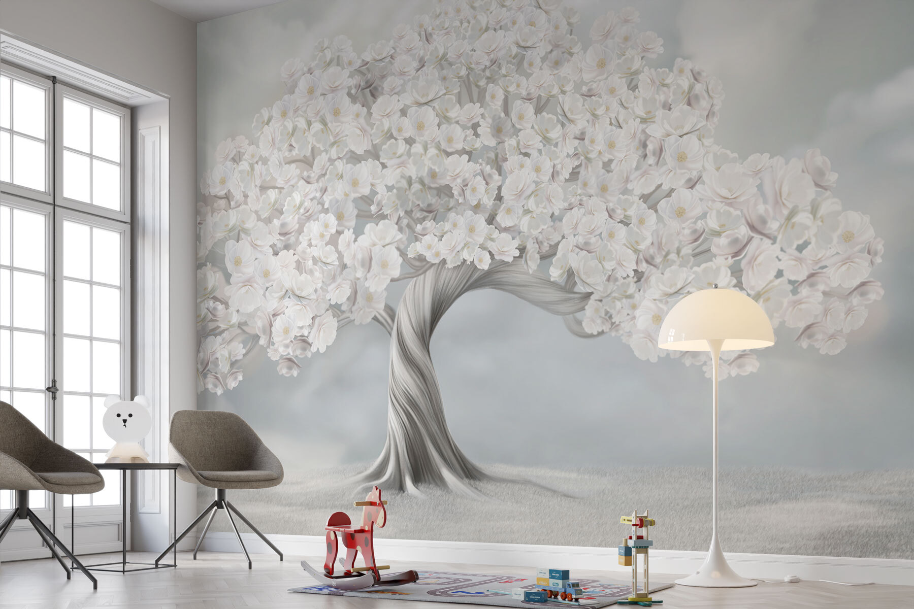 Premeňte akúkoľvek miestnosť pomocou tejto očarujúcej nástennej maľby stromu posiateho jemnými bielymi kvetmi. Evokuje pokojné prechádzky pokojnou japonskou záhradou, kde každý okvetný lístok šepká príbehy pokoja. Predstavte si, že sa prebúdzate s týmto nádherným výhľadom, ktorý je jemnou pripomienkou umenia prírody. Jemné farby vytvárajú upokojujúcu atmosféru; je to ako mať v sebe malý kúsok prírody, ideálny do útulných priestorov. Priatelia si to všimnú – možno sa opýtajú, či ste sa tajne nestali botanickým umelcom. Váš byt bude pôsobiť živo a sviežo, bude vyzývať k úsmevom a dotyku tepla.