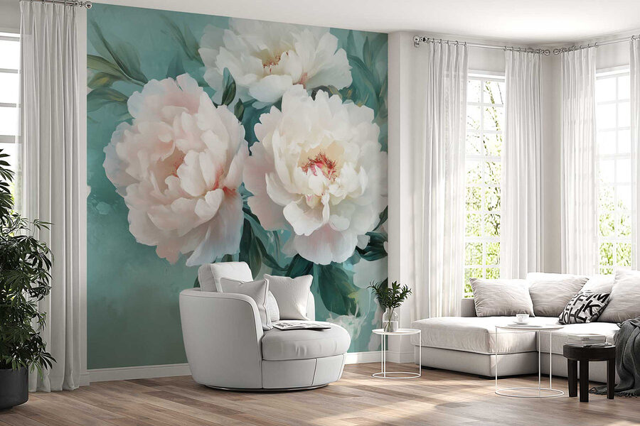 Rozžiarte prázdne steny touto úžasnou nástennou maľbou s bielymi pivonkami, ktorá je ideálna pre každého, kto chce vo svojom priestore trochu kvetinového kúzla. Predstavte si, že vstúpite do miestnosti, ktorá bude pripomínať rozkvitnutú záhradu – jemné okvetné lístky si priam pýtajú, aby ste ich obdivovali. Jemné odtiene tyrkysovej vám budú pripomínať letnú oblohu, vďaka ktorej sa aj ten najdaždivejší deň bude cítiť ako vánok. Komu by sa nepáčilo popíjať kávu obklopený týmito krásami? Je to ako preniesť kúsok prírody do interiéru, bez potreby zeleného palca. Verte mi, táto nástenná maľba bude priťahovať komplimenty rýchlejšie ako slnečnica na poli!