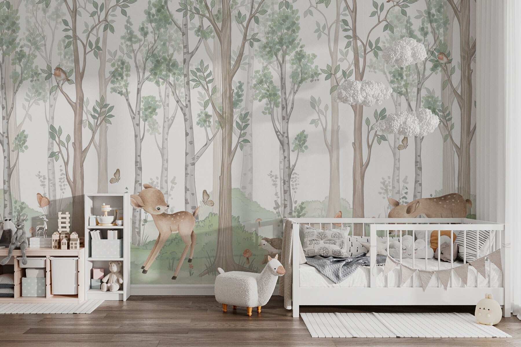 S touto očarujúcou fototapetou premeníte každú miestnosť na pokojný lesný únik. Predstavte si to: útulný priestor, v ktorom pobehujú nežné srnky, poskakujú zvedavé zajačiky a z korún stromov sa ozývajú vtáčie serenády. Je to ako preniesť kúsok prírody do interiéru bez zablatených čižiem! Vďaka jemným odtieňom a rozmarným zvieratkám je ideálny do detských izieb, herní alebo dokonca do pokojného čitateľského kútika. Len si predstavte, že sa schúlite s knihou, zatiaľ čo okolo vás poletujú motýle. Nástenná maľba šepká pokoj a pripomína nám prechádzky v lese, kde starosti miznú a vládne pokoj. Je ideálna pre milovníkov prírody, je to krásny spôsob, ako dodať svojmu domovu charakter a šarm – kto by to nechcel?
