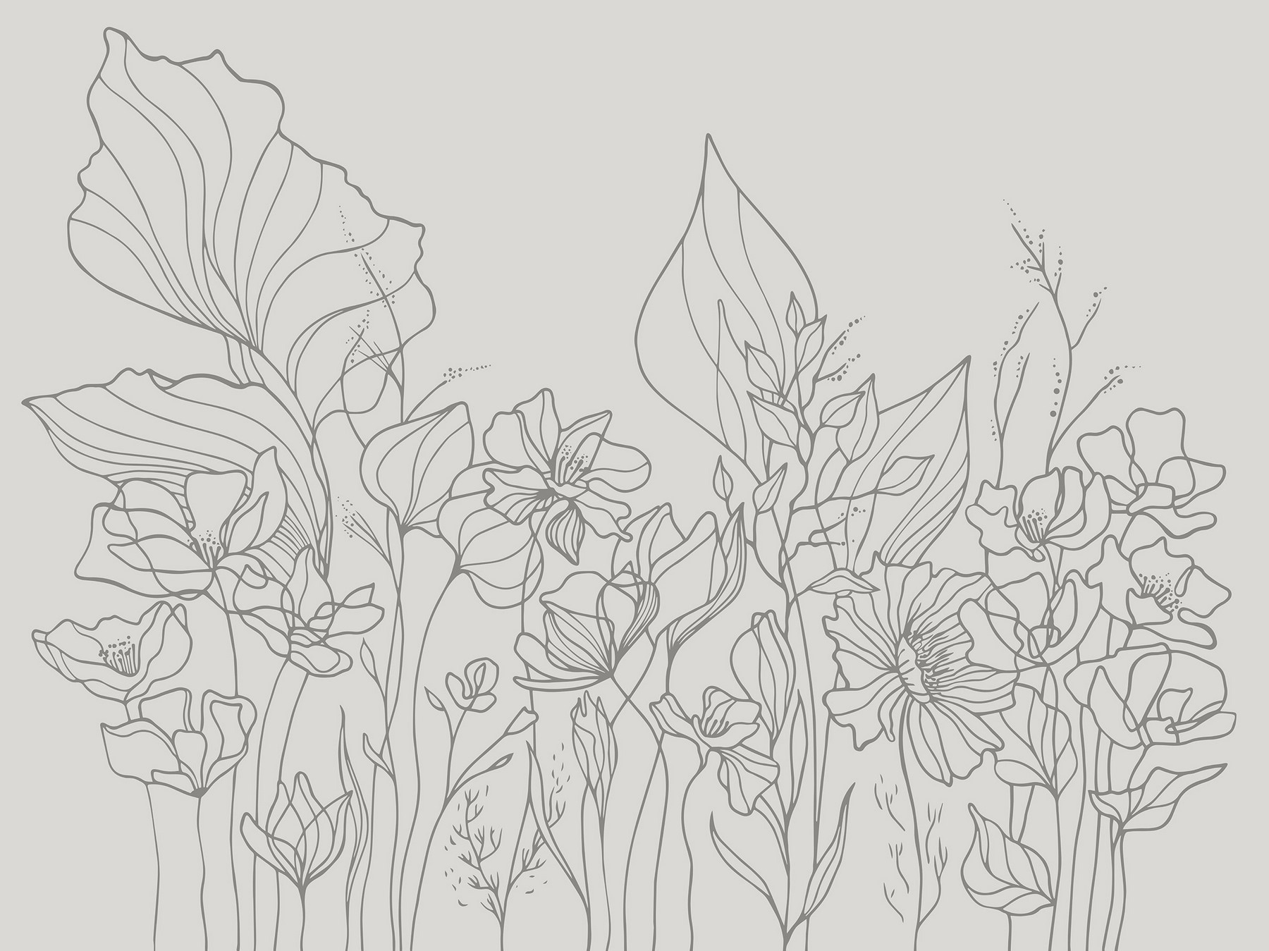 Premeňte svoj priestor na závan čerstvého vzduchu – táto nástenná maľba obsahuje náladové kresby kvetov, ktoré bez námahy spájajú umenie s prírodou. Predstavte si, že vojdete do miestnosti, kde každý pohľad odhaľuje nové detaily; jemné okvetné lístky a elegantné listy tancujú po stene. Je to ako pozvanie do záhrady v interiéri, ideálne pre lenivé nedeľné rána strávené popíjaním kávy a snívaním. Tento nádherný dizajn dodáva tento nádych pokoja a zároveň je podnetom na konverzáciu. Dosahuje rovnováhu medzi eleganciou a hravosťou, akoby vás kvety jemne vyzývali, aby ste sa zastavili a privoňali si k nim.