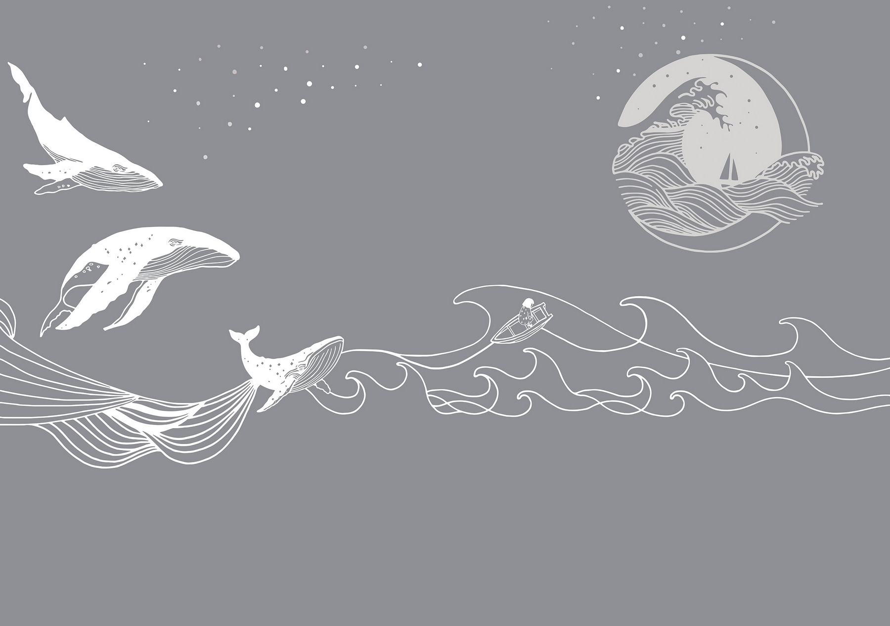 Ponorte sa do rozmarného sveta s touto nástennou maľbou s majestátnou veľrybou a osamelým mužom, ktorý sa plaví oceánom. Akoby miestnosť obmývala jemná vlna pokoja, ktorá každému pripomenie obrovské životné dobrodružstvá. Predstavte si, ako popíjate čaj a pritom sa pozeráte na tieto pôvabné veľryby – nevyvoláva to len radosť? Jemné odtiene a plynulé línie vytvárajú pokojnú atmosféru, ktorá je ideálna na snívanie o pobytoch na pláži alebo útulných večeroch. Je to nádherný tanec prírody, pri ktorom sa každý hosť bude pýtať, kde ste našli taký očarujúci kúsok!