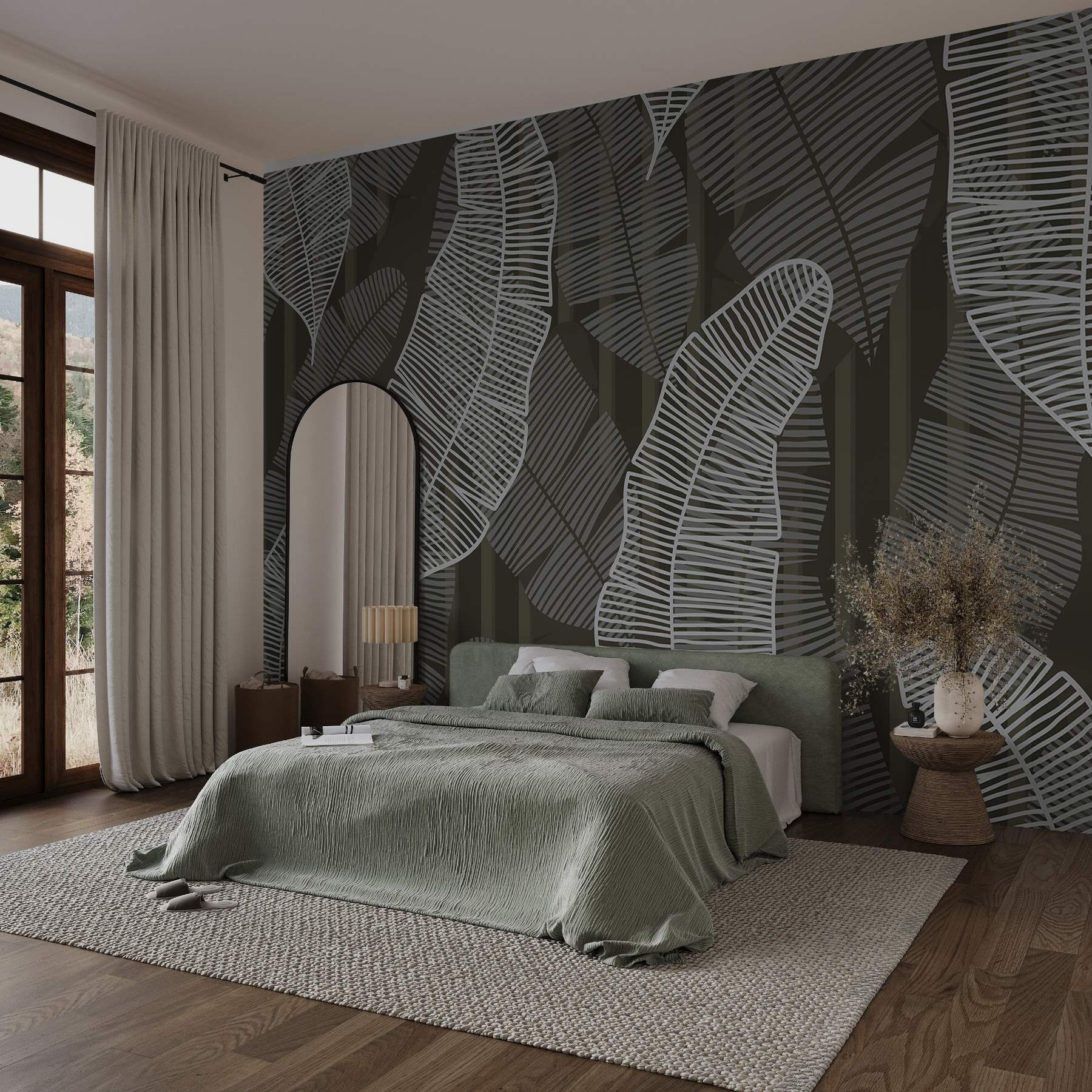 Premeňte akýkoľvek priestor na pokojnú džungľu pomocou tejto úžasnej nástennej maľby so vzorom bielych a sivých listov. Je to ako pozvať šepot prírody priamo k vám domov! Jemný dizajn bez námahy spája eleganciu a nádych divočiny, takže je ideálny pre útulný čitateľský kútik alebo živú obývačku. Len si predstavte, že popíjate rannú kávu obklopení týmito nádhernými listami; je to takmer ako cítiť svieži vánok bez toho, aby ste vyšli von. Táto nástenná maľba má tú atmosféru, ktorá dokáže zdvihnúť náladu a podnietiť kreativitu. Navyše je to skvelý podnet na konverzáciu – kto by nemal rád trochu šarmu inšpirovaného prírodou? Tak prečo nenechať krásu prírody dodať týmto stenám trochu šmrncu?
