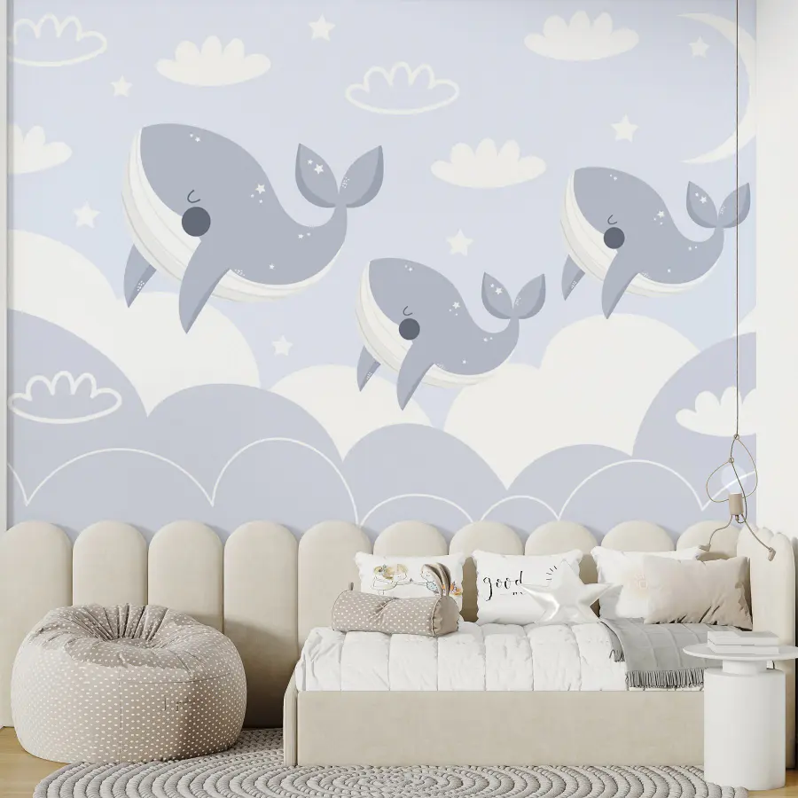 Neviete si predstaviť, ako relaxujete v takto vyzdobenej miestnosti? Upokojujúce farby a hravá atmosféra vytvárajú dokonalý únik od každodenného zhonu. Či už ide o detskú izbu alebo útulný kútik vo vašom obývacom priestore, títo očarujúci morskí obri udávajú ľahký tón.