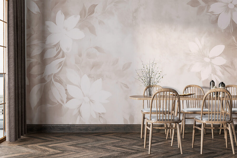 Premeňte každú miestnosť pomocou tejto očarujúcej nástennej maľby s bielym a sivým kvetinovým vzorom, ktorý pôsobí ako jemný jarný vánok. Predstavte si, že vstúpite do priestoru, kde po stenách tancujú jemné pivonky a rozkvitnuté ruže, ktoré pozývajú k teplu a pokoju. Táto nástenná maľba, ktorá je ideálna do útulnej obývačky alebo pokojnej spálne, dodáva ten správny nádych elegancie. Je to ako mať v interiéri tajnú záhradu – samozrejme, bez hmyzu! Jemné farby vytvárajú upokojujúcu atmosféru, takže je ideálnym pozadím pre relaxačné večery alebo veselé stretnutia. Vaše steny sa vám poďakujú!