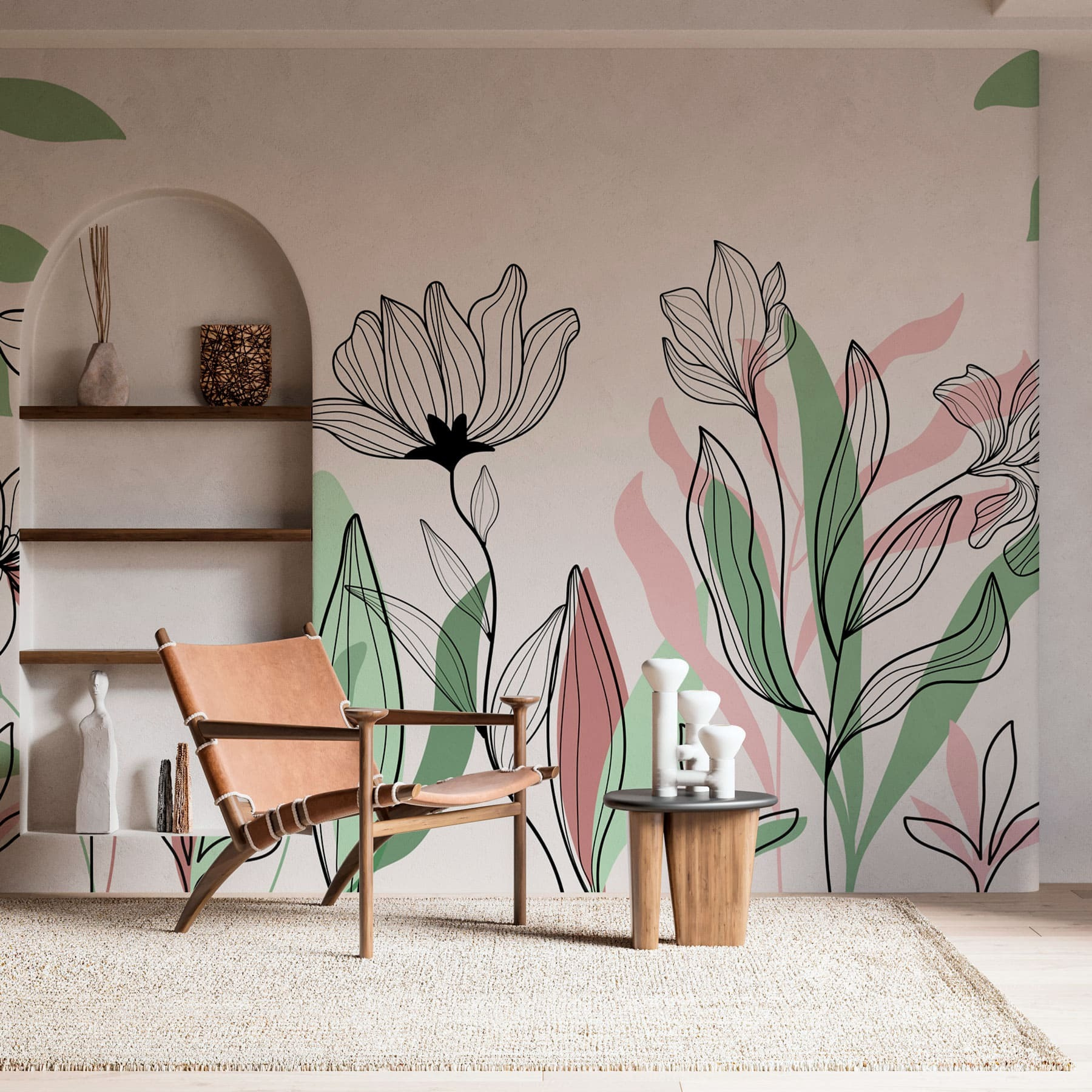 Pomocou nástennej maľby “Línia kvetov a listov” premeníte nudnú stenu na rozkvitnutý raj. Predstavte si, že sa každý deň prechádzate záhradou, kde každý okvetný lístok a list prináša do vášho priestoru svieži závan života. Jemné obrysy sa prelínajú s jemnými farbami a vytvárajú pokojnú atmosféru, ktorá je ideálna pre každú miestnosť – či už ide o útulný kútik alebo priestranný obývací priestor. Priatelia sa vás možno začnú pýtať, či nemáte ukryté kvetinárstvo. Je to ako šepot prírody, ktorý vám pripomína, aby ste spomalili a vychutnali si tento okamih, a to všetko bez toho, aby ste potrebovali zelený palec. Táto nástenná maľba, ktorá je ideálna na pridanie špeciálneho dotyku, nie je len dekoráciou, je to zážitok.