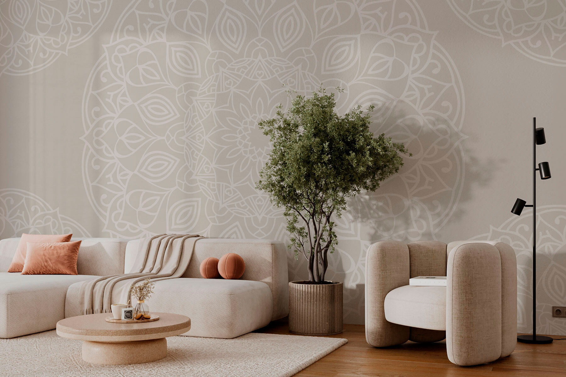 Premeňte akúkoľvek stenu na pokojné plátno s týmto úžasným vzorom “Nástenná maľba biela a sivá”. Predstavte si, že vstúpite do svojho priestoru a okamžite sa budete cítiť uvoľnene, ako keď sa po dlhom dni ponoríte do útulného kresla. Jemné, zložité vzory tancujú po stene a navodzujú pocit pokoja, ktorý je ťažké prekonať. Ideálne sa hodí do spálne alebo obývačky a dodá jej nádych sofistikovaného šarmu. Priatelia možno urobia dvojnásobný pohľad a budú sa čudovať, že ste si domov ozvláštnili kúzlom. Nie je to len dekor, je to atmosféra, ktorá nabáda k hrejivým rozhovorom a lenivým popoludniam plným snívania. Pri každom pohľade sa cítite ako malé objatie od steny.