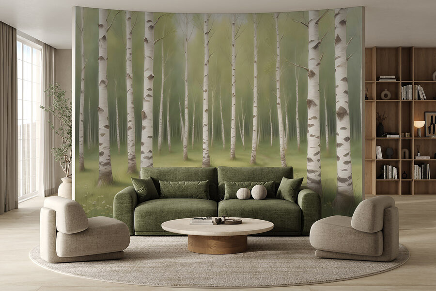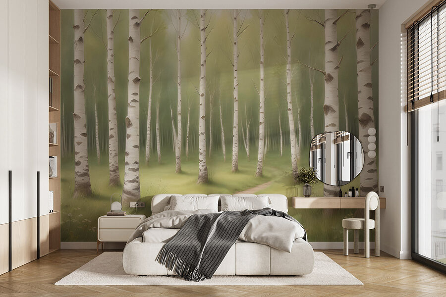 Premeňte akúkoľvek miestnosť pomocou očarujúcej nástennej maľby “Cesta lesom”. Predstavte si, že vstúpite do pokojného lesa, kde jemné slnečné svetlo presvitá cez brezy a jemný vánok šepká prísľuby dobrodružstva. Je to ako mať kúsok prírody priamo na stenách. Táto nástenná maľba je ideálna do obývačky alebo útulného kúta, upokojujúca zelená a biela farba vyzývajú k pokoju. Predstavte si, ako sa schúlite s knihou a prenesiete sa do pokojného úniku bez toho, aby ste museli opustiť domov. Okrem toho je to vynikajúce pozadie pre dôležité selfie s izbovými rastlinami. Kto by povedal, že zdobenie môže byť také osviežujúce?