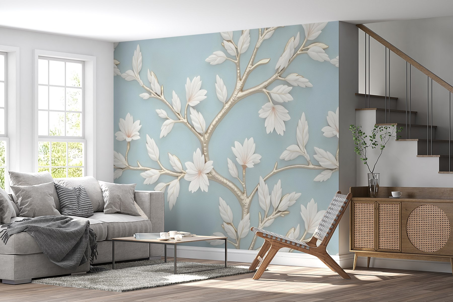 Premeniť stenu na úžasné umelecké dielo je jednoduchšie, ako sa zdá, s nástennou maľbou “Strom s bielymi listami a kvetmi”. Predstavte si, že vstúpite do miestnosti zdobenej jemnými vetvičkami a mäkkými bielymi kvetmi. Je to ako vniesť do interiéru nádych jari bez ohľadu na ročné obdobie. Jemné odtiene a zložité detaily nabádajú k pocitu pokoja, vďaka čomu sa každý priestor bude cítiť pokojnejšie. Predstavte si útulné večery strávené s dobrou knihou, obklopení touto prírodou inšpirovanou krásou. A buďme úprimní – kto by sa nechcel cítiť ako v botanickej záhrade? Táto nástenná maľba nie je len dekoráciou; je to malá pripomienka, aby sme si vážili malé, krásne veci v živote.