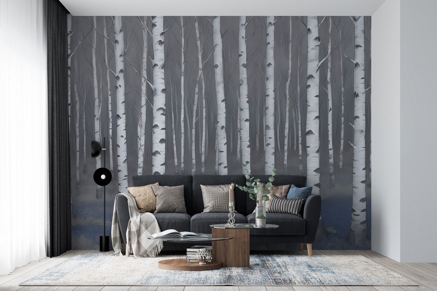 Premeňte akúkoľvek miestnosť na pokojné lesné útočisko pomocou tejto úžasnej nástennej maľby s brezami. Predstavte si, že sa prebúdzate do sivo sfarbeného lesa priamo vo svojom obytnom priestore, ktorý pri každom pohľade evokuje šepot prírody. Je to ako mať tajné lesné útočisko bez chrobákov – kto to prekoná? Pôvabné kmene stoja vysoko a vytvárajú pocit hĺbky, ktorý vás vtiahne dovnútra a takmer pozýva na prechádzku. Táto nástenná maľba je ideálna do útulných čitateľských kútikov alebo minimalistických kancelárií a dokáže premeniť každý obyčajný deň na magický únik. Stačí pridať šálku čaju a nechať upokojujúce vibrácie pôsobiť!