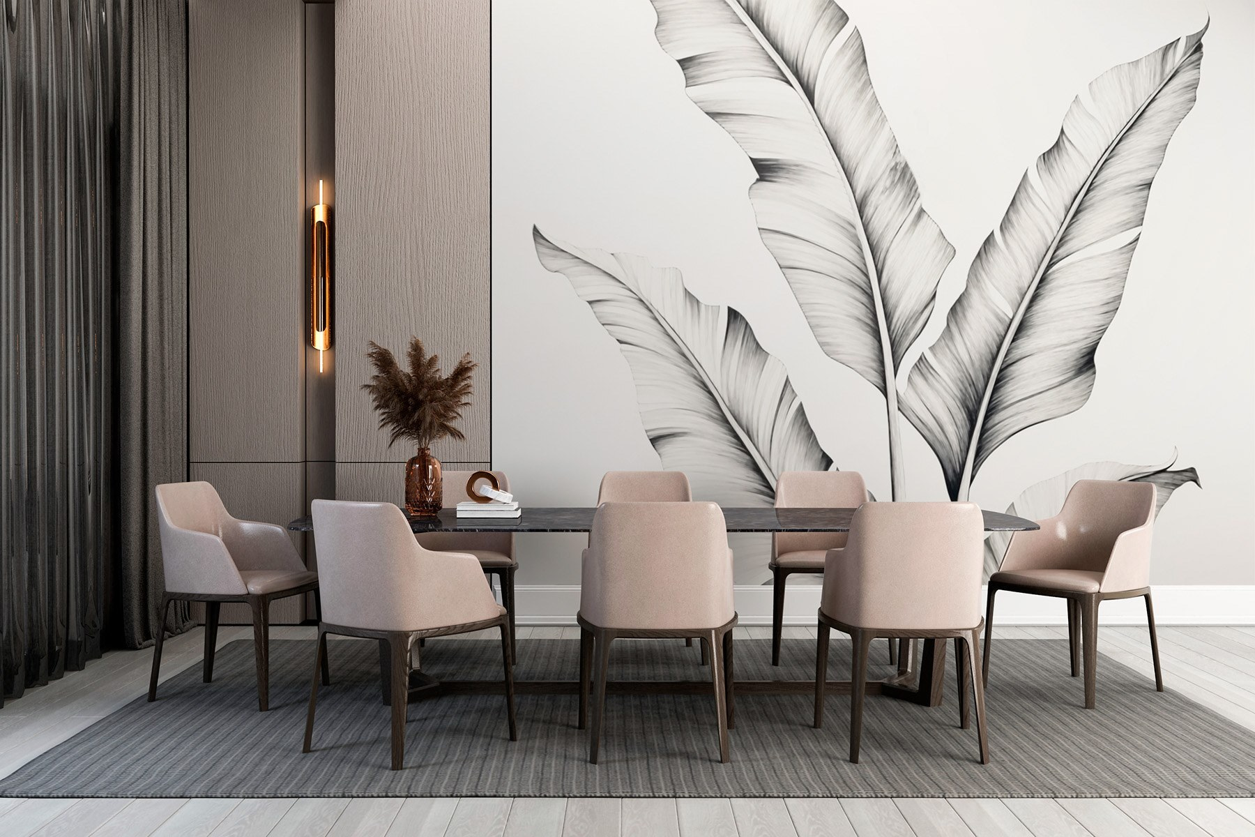 Pomocou tejto nástennej maľby s úžasnými kresbami rastlín premeníte každú miestnosť na pokojné útočisko. Predstavte si, že vstúpite do svojho priestoru a budete mať pocit, že ste sa zatúlali do tropického raja – samozrejme, bez toho, aby ste opustili gauč. Elegantné línie listov sa jemne kolíšu a vytvárajú pocit pokoja a spojenia s prírodou.