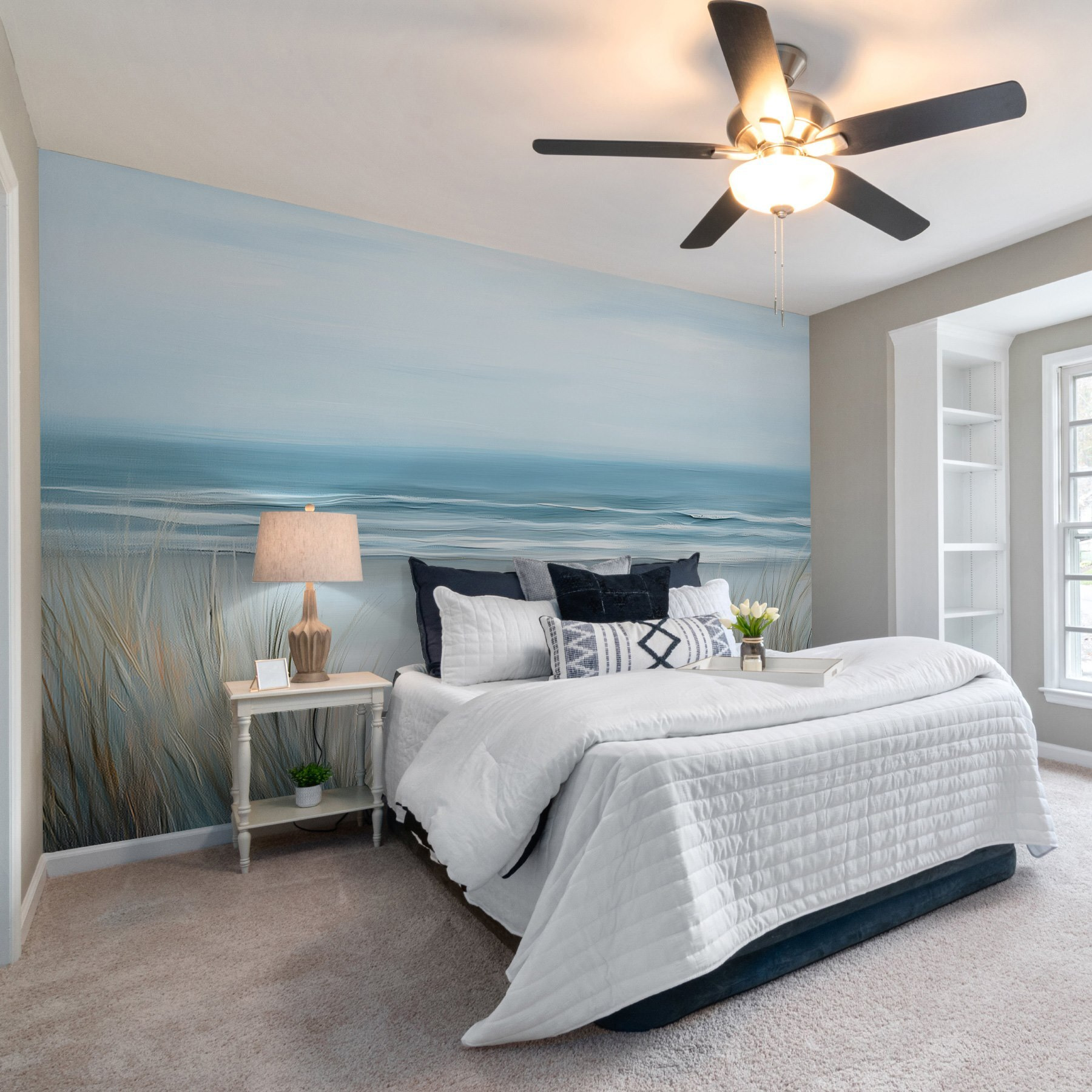 Predstavte si, že vstúpite do miestnosti, v ktorej máte pocit, akoby do nej práve vplával jemný prímorský vánok. Táto nástenná maľba “Pláž s trávou a vlnami” presne to dokáže. Zachytáva pokojnú krásu pobrežia s jemnými farbami, ktoré šepkajú relaxáciu. Predstavte si, ako trávite lenivé popoludnia len tak, pozerajúc na vlny, a cítite, ako sa vaše starosti odplavujú ako stopy v piesku. Jemné trávy sa kolíšu, akoby vás pozývali na prechádzku po pobreží. Je to dokonalý doplnok pre útulný čitateľský kútik alebo svetlý jedálenský kút – kde trocha plážových vibrácií dokáže premeniť každý deň na minidovolenku. Ideálny pre snívajúcich aj milovníkov pláže!