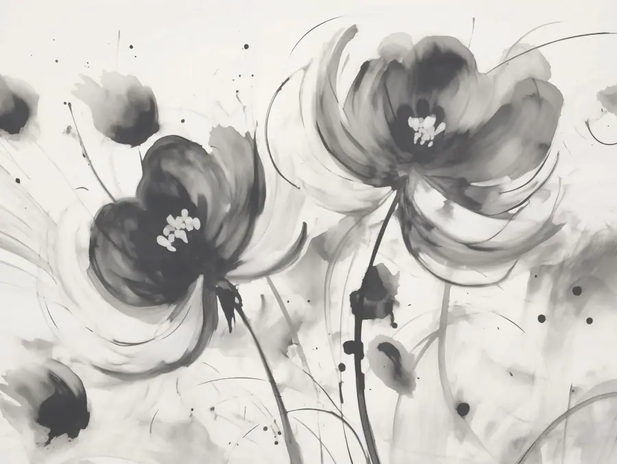 Premeňte svoj priestor pomocou tejto úžasnej nástennej maľby s jemnou kvetinovou maľbou, ktorá tancuje na žiarivo bielom pozadí. Súhra jemnej čiernej a bielej farby vytvára zasnenú atmosféru. Predstavte si, že vstúpite do svojej izby a budete sa cítiť trochu uvoľnenejšie, trochu inšpiratívnejšie. Je to ako mať kúsok prírody priamo na stene, bez peľovej alergie!
