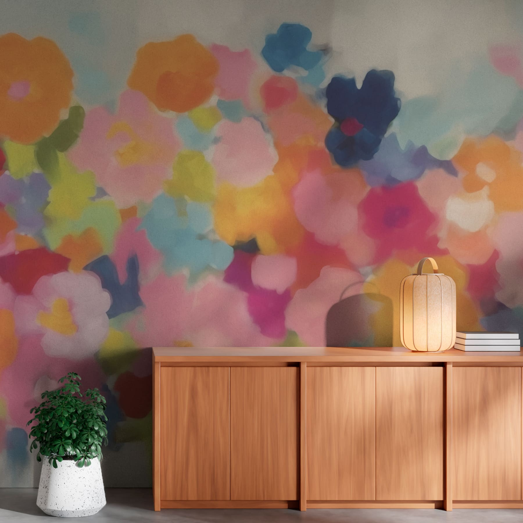 Premeňte svoj priestor pomocou tejto žiarivej nástennej maľby s nádhernou zmesou farebných kvetov. Predstavte si, že sa prebúdzate do prívalu rozkvitnutej nálady, kde každý pohľad pripomína prechádzku po slnkom zaliatej záhrade. Jemné odtiene sa ľahko prelínajú a vytvárajú zasnenú atmosféru, ktorá našepkáva relaxáciu. Je ideálny na oživenie útulného zákutia alebo na udanie veselého tónu v živej obývačke. Priatelia sa určite budú pýtať, kde ste našli takýto skvost. Chcete popíjať kávu s kvetinovým pozadím? Táto nástenná maľba sa o vás postará, prinesie do interiéru kvapku prírody, bez potreby zalievania!