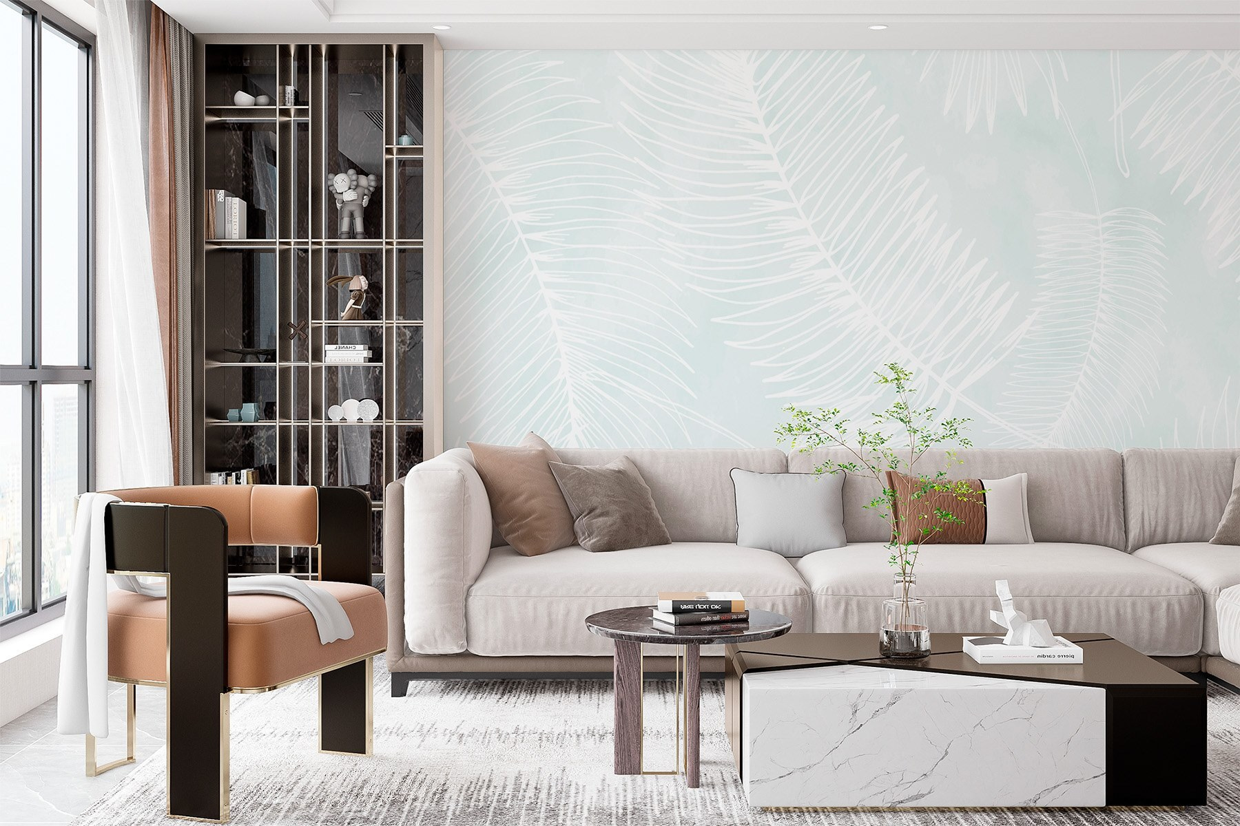 Premeňte obyčajný priestor na pokojné útočisko pomocou nástennej maľby “Biely vzor listov”. Je to ako priniesť závan čerstvého vzduchu priamo do vášho domova – bez peľu! Tento elegantný vzor obsahuje jemné biele listy plávajúce na jemnom, pokojnom pozadí. Je ideálny na vytvorenie upokojujúcej tropickej atmosféry, ktorá našepkáva relaxáciu. Predstavte si príjemné večery pri popíjaní čaju, keď vás tieto jemné vzory zahaľujú do pohodlia. Nie príliš okázalé, len upokojujúci dotyk, ktorý pôsobí, akoby príroda vstúpila dovnútra. Skvele sa hodí do každej miestnosti – len nečakajte, že vám bude zalievať rastliny!