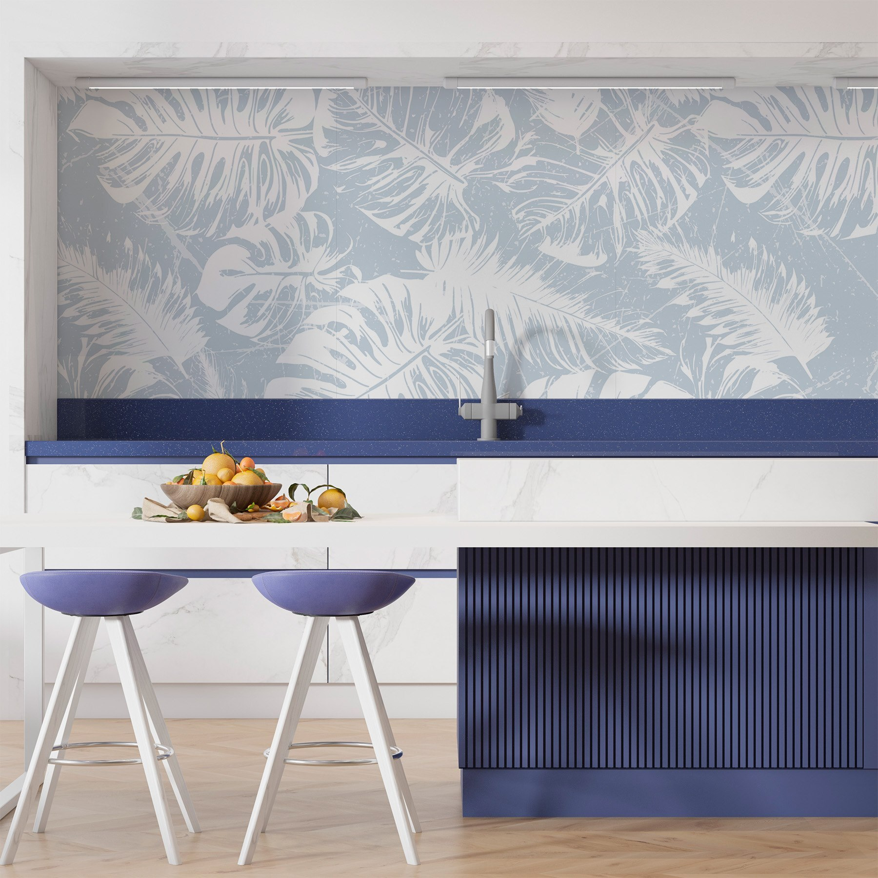 Premeňte akúkoľvek miestnosť na pokojný únik s touto očarujúcou nástennou maľbou s bielymi listami jemne zasadenými do jemného modrého pozadia. Predstavte si, že vstúpite do svojho obytného priestoru a budete sa cítiť ako v pokojnej tropickej oáze, bez vlhkosti a otravných komárov. Jednoduchosť dizajnu vyvoláva predstavu lenivých popoludní s chladivým nápojom v ruke. Je ideálny na vytvorenie uvoľnenej atmosféry, či už v útulnom čitateľskom kútiku, alebo v živej jedálni. Navyše dodáva šmrnc prírode bez akejkoľvek údržby – nie je potrebné zalievanie! Len čistá blaženosť na stenách. Či už si hostia vychutnávajú scenériu, alebo vy prechádzate okolo s bielizňou, určite vyvolá úsmev a možno aj trochu snívania.