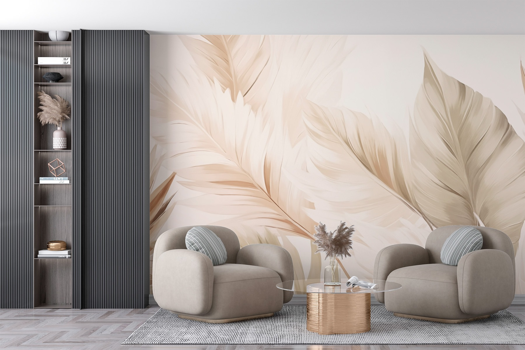Bring the serene beauty of nature indoors with “Nature’s Delicate Leaf Patterns Unfold.” This mural transforms any wall into a calming oasis, featuring soft, elegant leaf designs that make you feel like you’ve stepped into a sunlit forest. Imagine sipping your morning coffee in a space that feels fresh and airy, the gentle greens and creams wrapping around you like a cozy hug. Perfect for living rooms or bedrooms, it adds a touch of sophistication without being too much. Whether you’re a nature lover or simply seeking a peaceful vibe, this mural is sure to elevate your space.