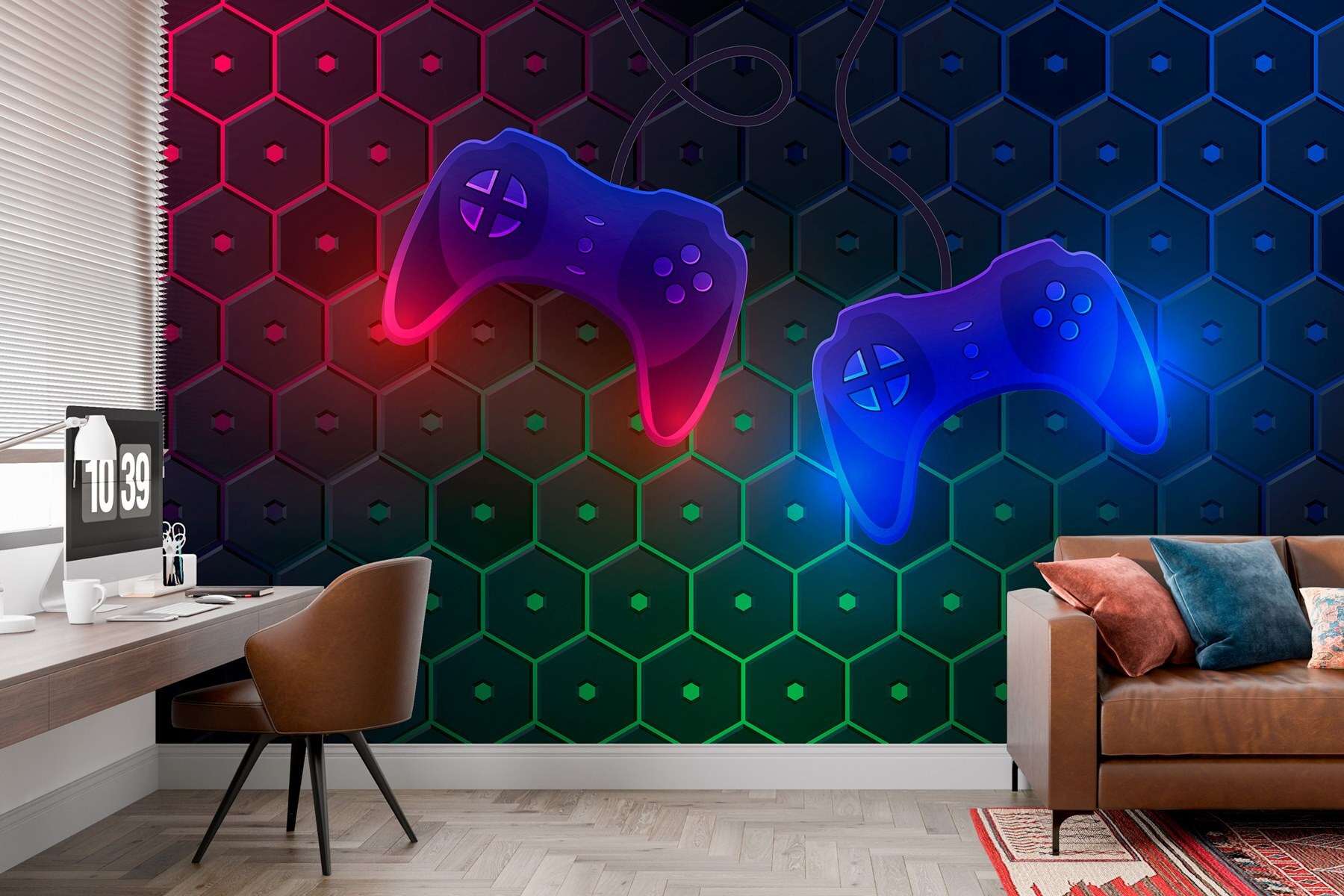 Premeňte svoj priestor s prívalom kreativity! Táto fascinujúca nástenná maľba so žiarivými hernými ovládačmi na šesťuholníkovom pozadí je ako hravá pozvánka na ponorenie sa do sveta hier. Predstavte si, ako trávite čas s priateľmi, ako sa ozýva smiech, keď sa navzájom vyzývate, a to všetko v žiari týchto farebných ovládačov. Nie je to len dekorácia, je to vibrácia – zábavný spúšťač konverzácie, ktorý vnesie energiu do každej miestnosti. Zmes výrazných farieb a geometrických vzorov dodáva moderný nádych, ktorý udržuje sviežosť. Perfektne sa hodí do hráčskych jaskýň, detských izieb alebo akéhokoľvek priestoru, ktorý túži po štipke osobitosti. Pri každej prechádzke sa budete usmievať – je to takmer akoby vás nástenná maľba vyzývala na odvetu!