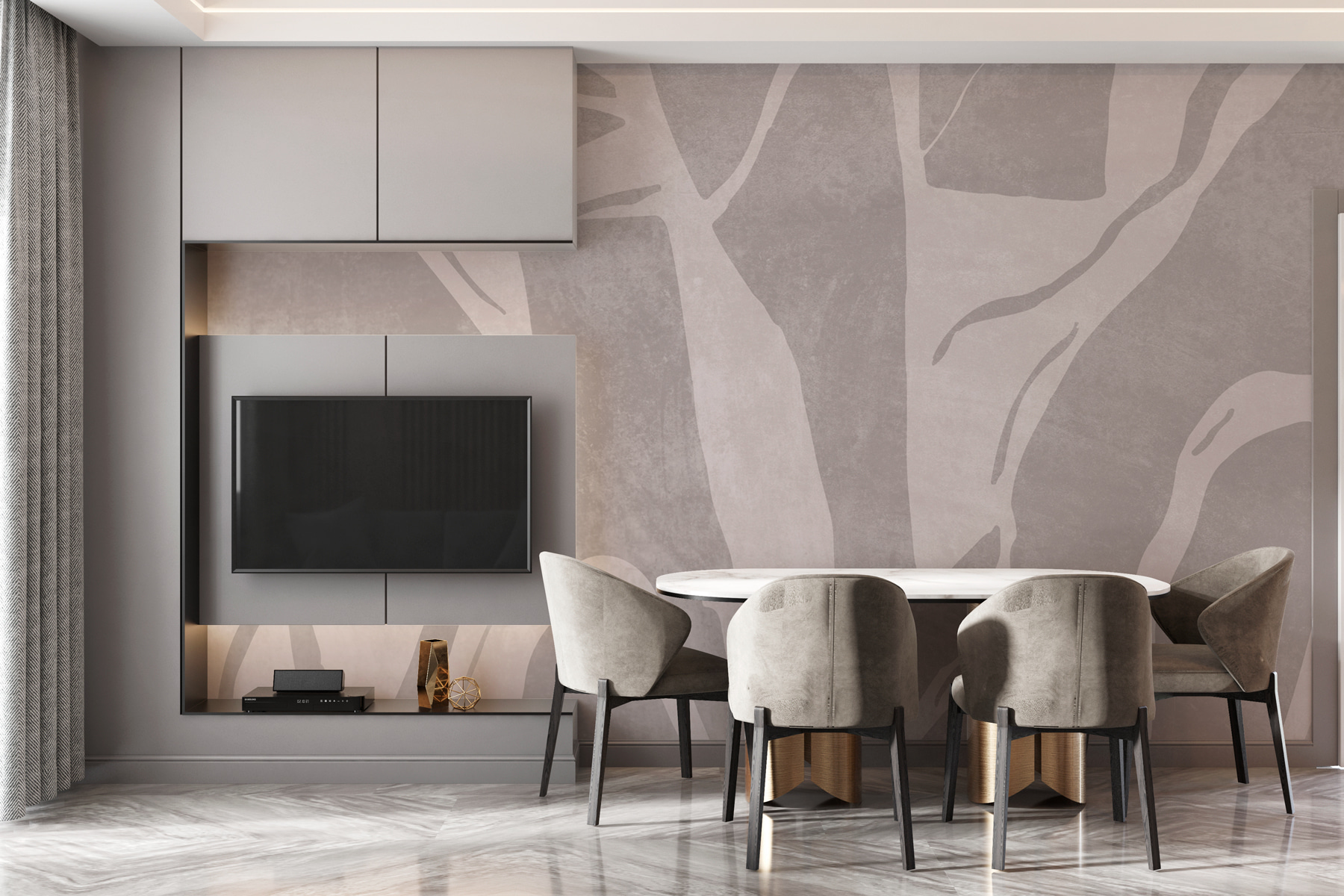 Je ideálny pre útulné zákutia alebo rozsiahle priestory, dodáva im nádych sofistikovanosti bez toho, aby sa príliš snažil. Či už popíjate kávu alebo sa ponárate do dobrej knihy, vďaka tejto nástennej maľbe sa každý okamih bude cítiť výnimočne. Nie je to len tapeta, je to zážitok, ktorý našepkáva: “Vitajte doma.”