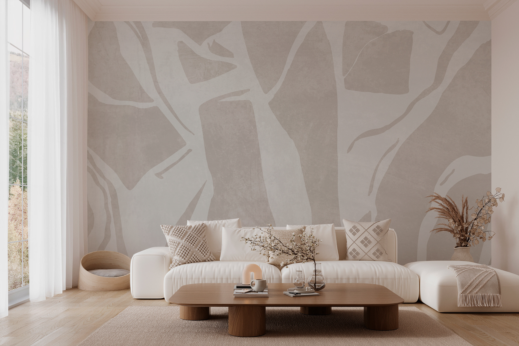 Premena priestoru pomocou tejto nástennej maľby je trochu ako príjemné objatie vašich stien. Predstavte si to: ľahké, vzdušné pozadie bielej a sivej farby, obtiahnuté elegantnými líniami, ktoré plynú a tancujú. Je moderná, ale zároveň nadčasová – ideálna do miestnosti, kde sa stretáva kreativita a pohodlie. Predstavte si, ako popíjate kávu v slnečnom lúči a jemné textúry vášho priestoru vdychujú život lenivým nedeľám. Táto nástenná maľba nie je len dekorácia, ale aj nálada. Navyše sa vyhnete nudným béžovým stenám; vaše steny si zaslúžia trochu osobnosti! Je to ako výtvarné umenie, ale pre každodenný život – trochu drámy bez rozruchu.