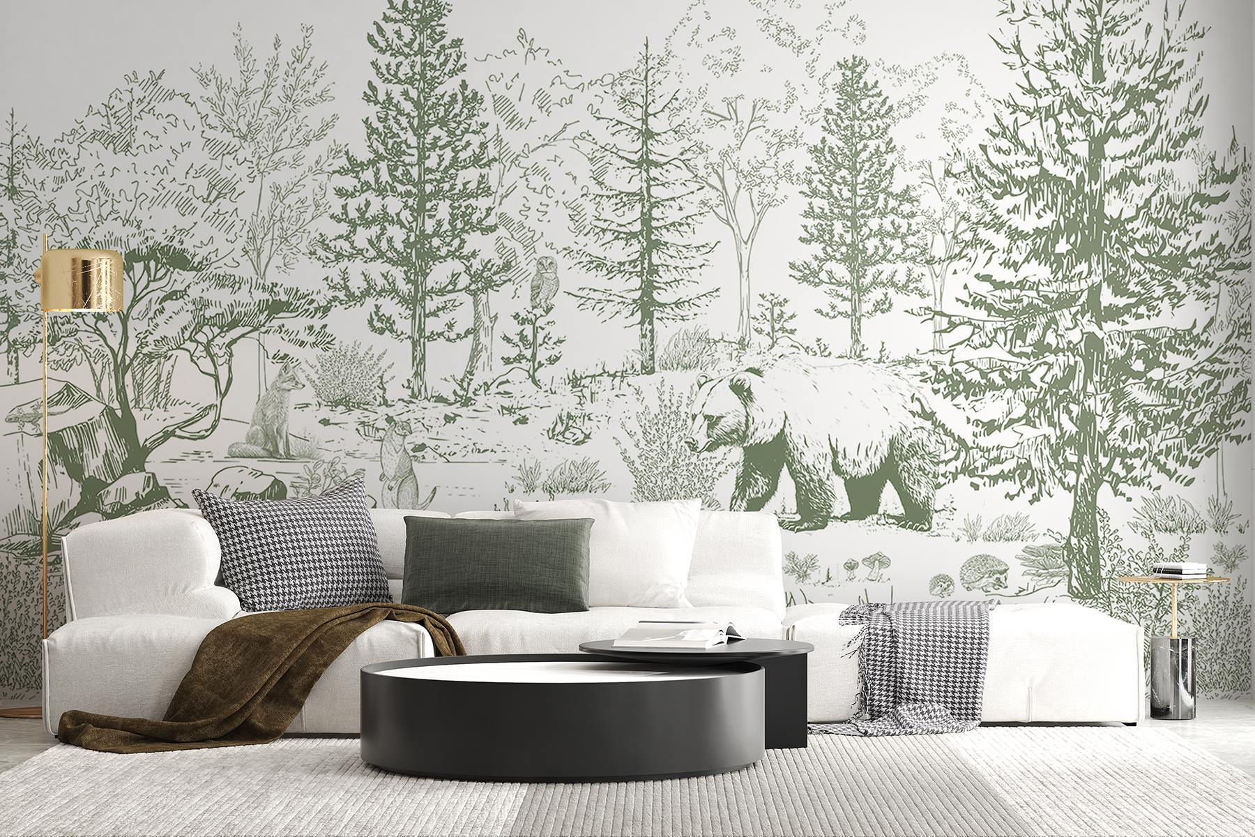 Predstavte si, že vstúpite do útulnej chaty, kde vás pokoj lesa obklopí ako teplé objatie. Táto nástenná maľba s medveďom, ktorý sa prechádza bujnou zeleňou, vnesie tento pocit priamo do vášho priestoru. Jemné línie a zemité tóny vytvárajú príjemnú atmosféru, ktorá je ideálna na snívanie alebo príjemné rozhovory. Akoby medveď jedného dňa mohol nakuknúť cez vaše okno a podeliť sa s vami o príbehy z lesa. Premeňte akúkoľvek miestnosť na útočisko v prírode – ideálne do obývačky alebo spálne, kde sa relaxácia stretáva s dobrodružstvom. Tak si vezmite šálku čaju a nechajte túto nástennú maľbu inšpirovať k malému putovaniu priamo u vás doma.