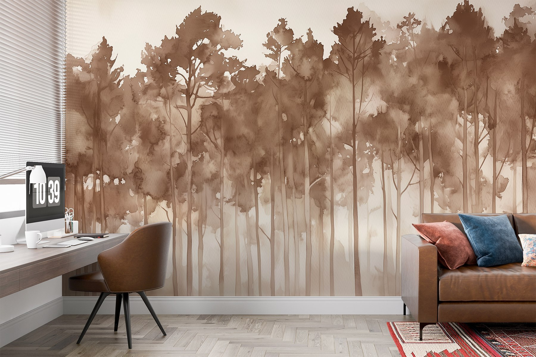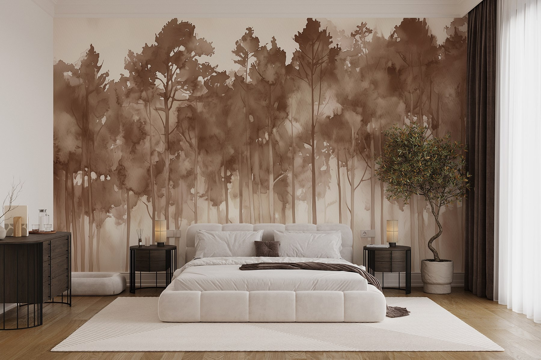 Premeňte stenu na pokojný únik s touto nástennou maľbou “Skupina stromov v hmlistom lese”. Predstavte si, že zakaždým, keď vojdete do miestnosti, vstúpite do zasneného lesa. Jemné akvarelové odtiene vytvárajú upokojujúcu atmosféru, ktorá len šepká pokoj. Je to ako spôsob, akým vás príroda zabalí do útulného objatia – bez otravných chrobákov!