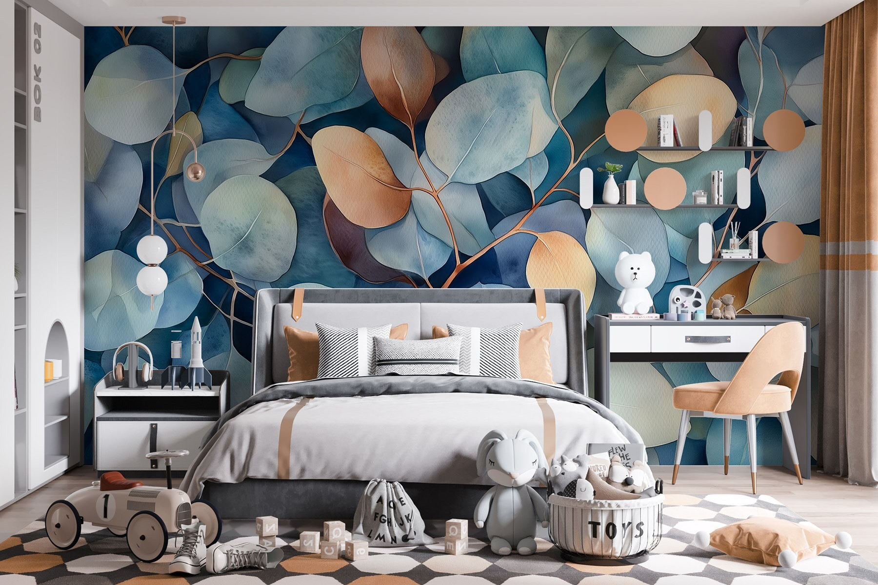 Premeňte akýkoľvek priestor na útulné útočisko pomocou tejto úžasnej nástennej maľby so skupinou listov, ktoré čakajú na pozvanie prírody. Predstavte si lenivé rána pri popíjaní kávy obklopené jemnými odtieňmi modrej a zemitej zelene, a to všetko bez potreby zeleného palca. Táto nástenná maľba pôsobí ako závan čerstvého vzduchu – akoby ste sa stratili v pokojnom lese bez toho, aby ste opustili svoj domov. Každý list tancuje po stene a našepkáva pokojnú atmosféru, ktorá je ideálna na relaxáciu po dlhom dni. Je to objatie prírody priamo na vašej stene! Navyše, kto by nechcel zapôsobiť na svojich priateľov takouto jedinečnou výzdobou? Je čas premeniť tú nevýraznú stenu na listnatý únik!