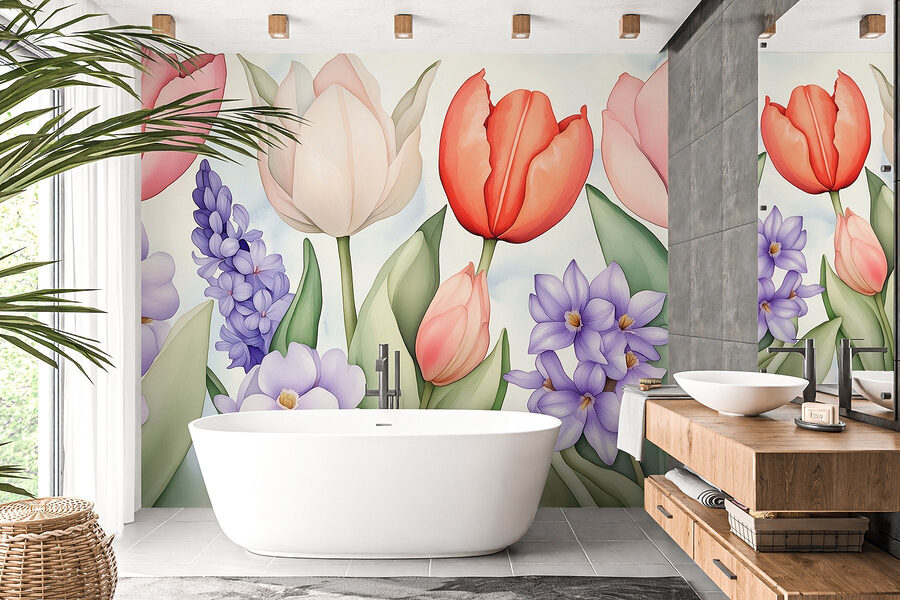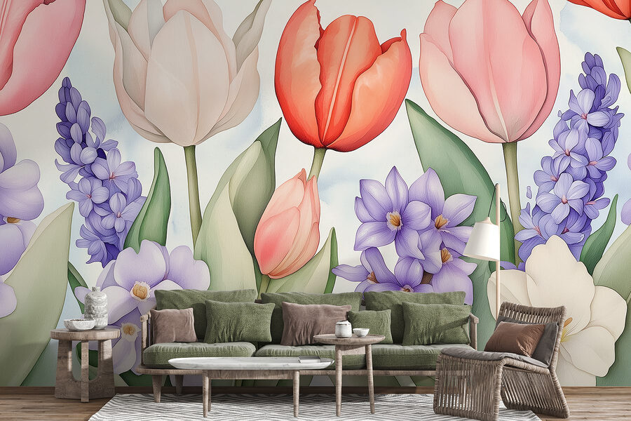 Predstavte si, že vstúpite do miestnosti, ktorá je ako jar po celý rok. Táto očarujúca nástenná maľba, plná živých kvetov a sviežich listov, to dokáže! Vďaka ohromujúcemu množstvu tulipánov a jemných kvetov je to ako mať mini záhradu priamo na stene. Jemné farby prinášajú pocit pokoja, takže je ideálna do útulného čitateľského kútika alebo živej obývačky. Hostia pocítia tú hrejivú, príjemnú atmosféru a možno sa dokonca vyberú na lov do najbližšieho kvetinárstva! A hej, je to skvelý spôsob, ako zapôsobiť na priateľov bez toho, aby ste museli čokoľvek zalievať. Či už ste fanatik do kvetín, alebo len milujete farebné odlesky, táto nástenná maľba vás dostane!