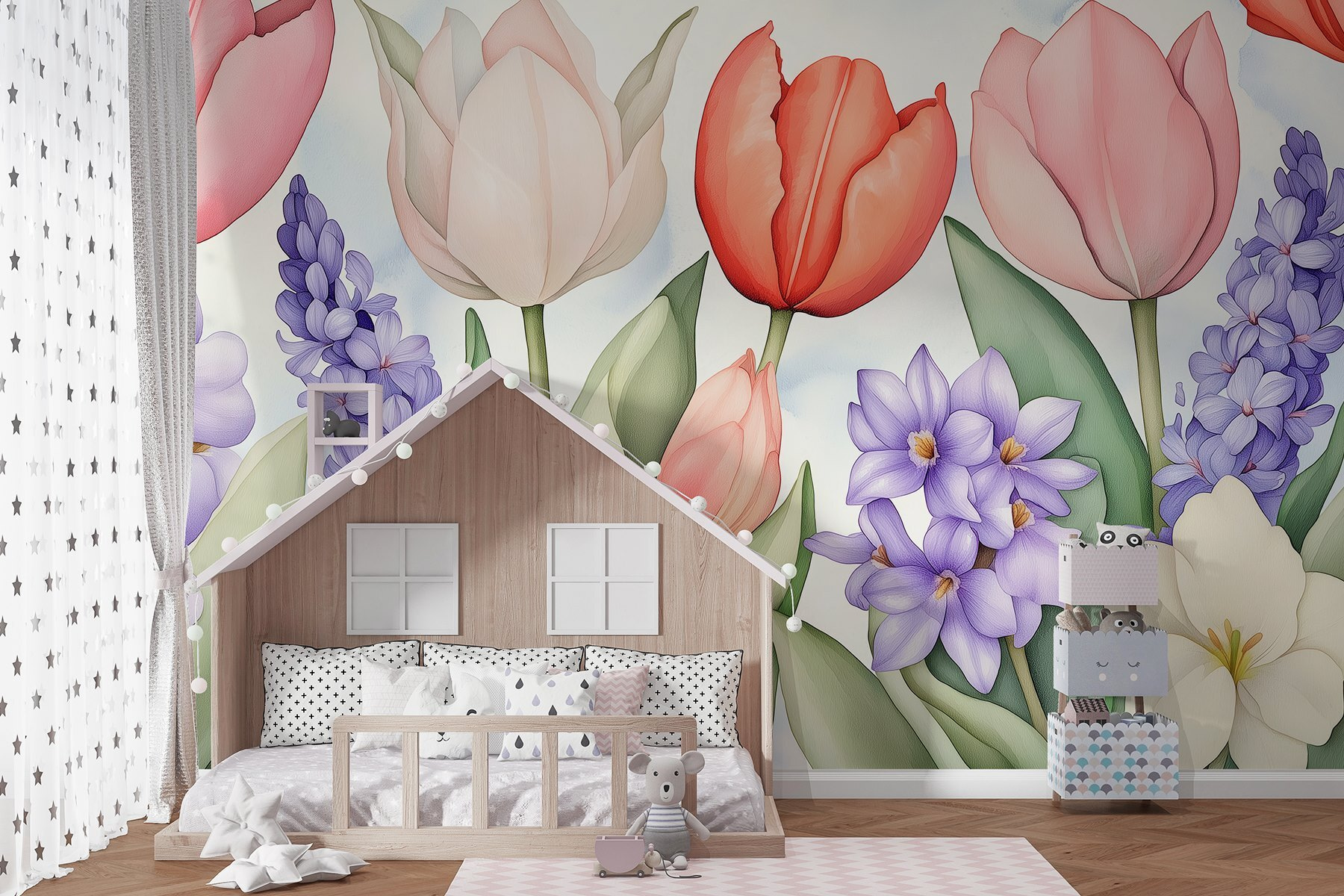 Predstavte si, že vstúpite do miestnosti, ktorá je ako jar po celý rok. Táto očarujúca nástenná maľba, plná živých kvetov a sviežich listov, to dokáže! Vďaka ohromujúcemu množstvu tulipánov a jemných kvetov je to ako mať mini záhradu priamo na stene. Jemné farby prinášajú pocit pokoja, takže je ideálna do útulného čitateľského kútika alebo živej obývačky. Hostia pocítia tú hrejivú, príjemnú atmosféru a možno sa dokonca vyberú na lov do najbližšieho kvetinárstva! A hej, je to skvelý spôsob, ako zapôsobiť na priateľov bez toho, aby ste museli čokoľvek zalievať. Či už ste fanatik do kvetín, alebo len milujete farebné odlesky, táto nástenná maľba vás dostane!