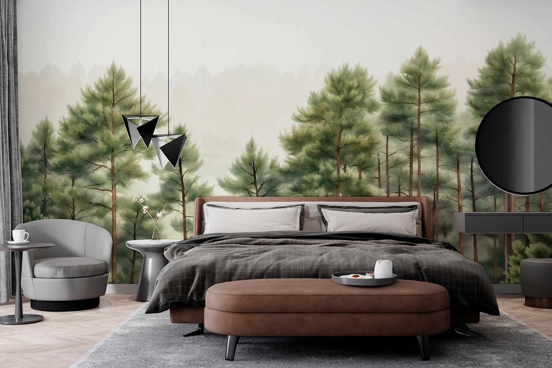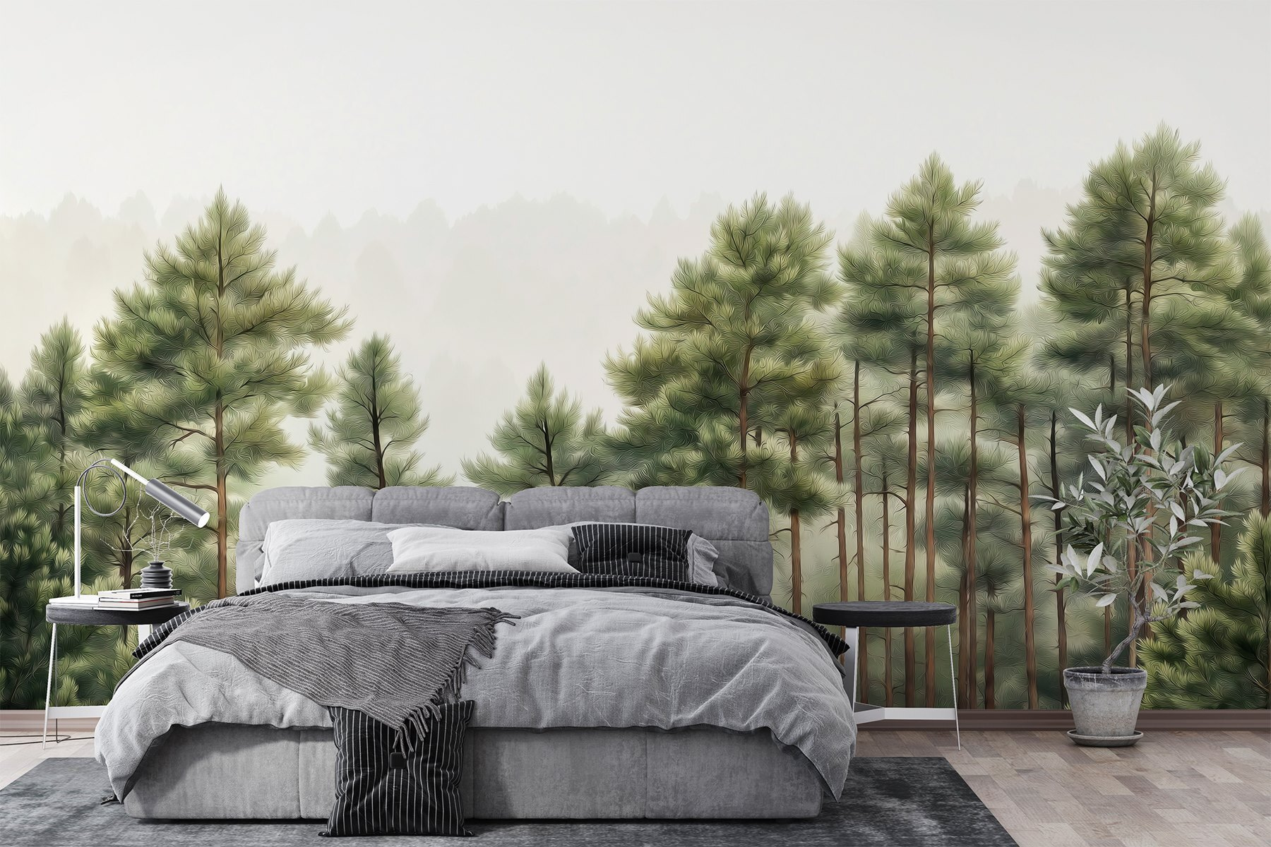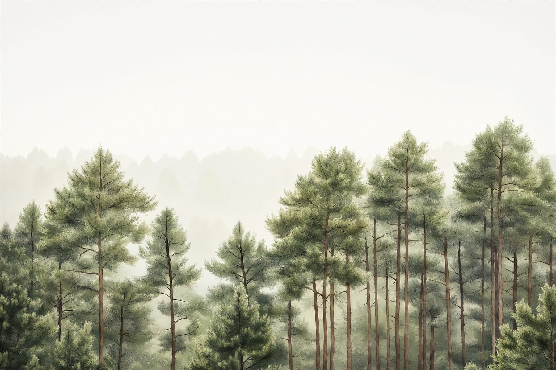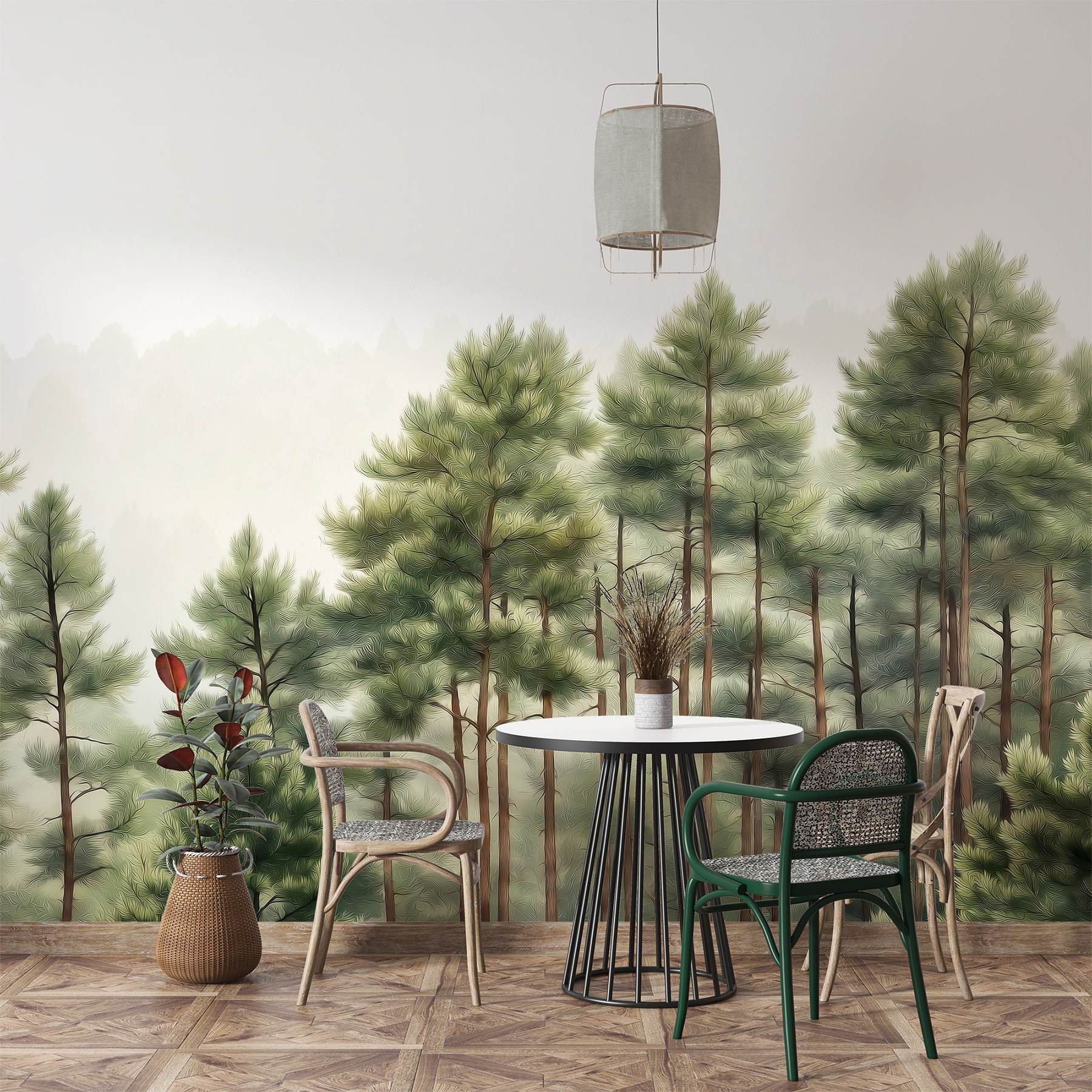 Premeňte svoj priestor pomocou tejto úžasnej nástennej maľby “Skupina stromov v lese”. Predstavte si to: každé ráno sa zobúdzate do pokojného lesa priamo u vás doma. Len si predstavte tie upokojujúce účinky – ako útulné objatie od samotnej prírody. Mäkká zeleň a jemná hmla vás vtiahnu dovnútra a navodia pocit pokoja a pohody. Je to ako mať vlastný kúsok prírody, bez chrobákov a bahna. Ideálny na vytvorenie útulného čitateľského kútika alebo osviežujúcej akcentovej steny. Kto potrebuje dovolenku, keď si môže krásu lesa preniesť do interiéru? Pridajte kúsok kúzla prírody a pripravte sa na inšpiráciu na snenie.