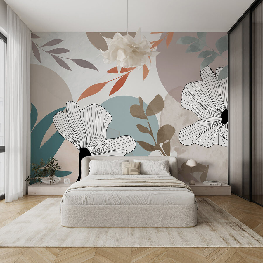 Premeňte svoj priestor pomocou tejto úžasnej nástennej maľby s jemnými bielymi kvetmi, sviežimi hnedými listami a hravými modrými kruhmi. Je to ako preniesť kúsok prírody do interiéru bez celej drámy s polievaním. Predstavte si, že sa zobudíte na tento žiarivý dizajn, kde jemné akvarelové farby spolu tancujú a vytvárajú upokojujúcu atmosféru – ideálnu na popíjanie rannej kávy alebo na malého popoludňajšieho šlofíka. Pôsobí sviežim, umeleckým dojmom, vďaka ktorému sa každá miestnosť môže cítiť ako útulná galéria. Pridanie tejto nástennej maľby je rýchly spôsob, ako vdýchnuť život nudnej stene a vyvolať poriadnu radosť – kto by to nechcel?