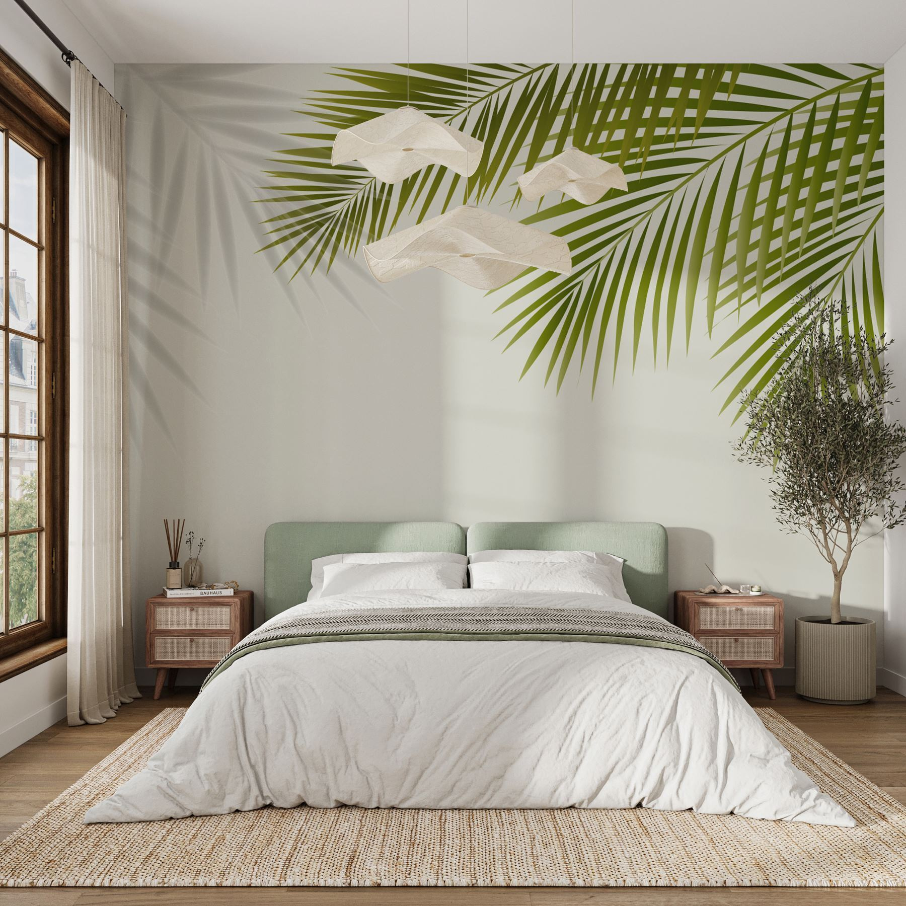 Premeňte akúkoľvek miestnosť na osviežujúci únik s touto nástennou maľbou so sviežimi zelenými listami na jemnom bielom pozadí. Pôsobí ako okamžitý únik, ideálny pre tých, ktorí túžia po kúsku prírody bez starostí so zalievaním rastlín. Predstavte si, že sa zobudíte na túto živú scénu – je to ako mať tropickú oázu priamo na stene. Či už je to v útulnej obývačke, alebo v bezveternej spálni, tieto listy vám mávajú na pozdrav, akoby vás pozývali, aby ste si oddýchli. Táto nástenná maľba, ideálna pre milovníkov prírody, dodáva pokojnú atmosféru a zároveň prináša spŕšku života. Perfektne sa hodí do zákutí alebo na výraznú stenu, je to jednoduchý spôsob, ako vdýchnuť do interiéru trochu čerstvého vzduchu, bez paliem.