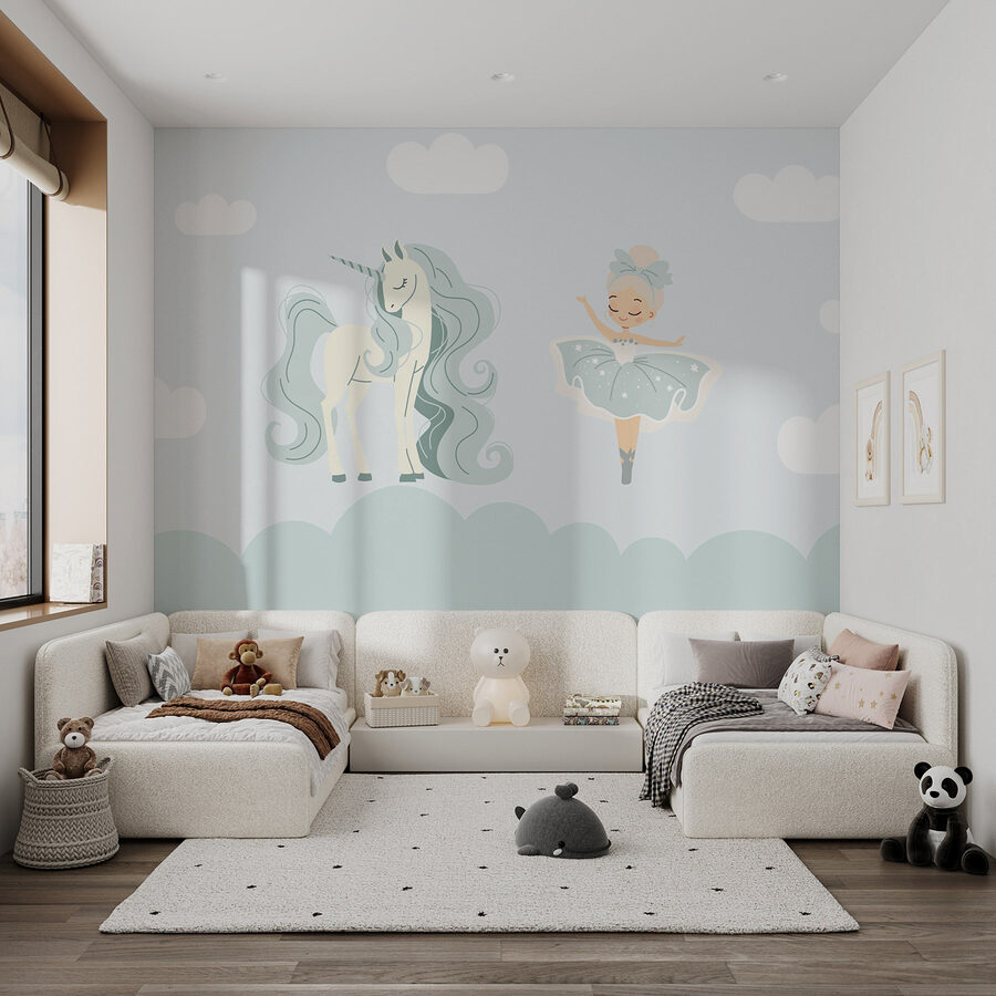 Predstavte si, že vstúpite do miestnosti, ktorá bude pripomínať rozmarné snenie – táto “Nástenná maľba s karikatúrou dievčaťa a jednorožca” presne to dokáže! Vďaka jemným farbám a milým postavičkám premení každý priestor na hravý raj. Predstavte si zvedavé dievčatko, ako sa krúti a predstiera, že tancuje so svojím priateľom jednorožcom. Rozkošné detaily vyvolajú chichotanie a podporia bujnú fantáziu. Navyše, kto by nemal rád čarovný únik z každodennosti? Je to ako priniesť posyp rozprávkového prachu priamo do vášho domova – očarujúce, však? Perfektne sa hodí na oživenie detských izieb alebo herní – ktovie, či aj izby pre dospelých môžu mať jednorožcov!