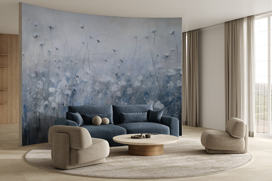 Premeňte svoj priestor pomocou tejto očarujúcej nástennej maľby s jemnými kvetmi tancujúcimi v zasnenom poli. Je ako oživené akvarelové dielo, ktoré do interiéru vnáša jemný dotyk prírody. Predstavte si to: vojdete do miestnosti a BUM! Privíta vás záplava jemnej bielej a modrej farby, ktorá vám našepkáva pokojné vibrácie. Či už ide o rannú kávu alebo večerné rozhovory, táto nástenná maľba navodí tú správnu náladu. Ideálna do útulného čitateľského kútika alebo na oživenie obyčajnej steny, je to ako mať kúsok pokoja priamo doma. Vychutnajte si chvíľu, zastavte sa, nadýchnite sa… necítite, ako sa kvety kolíšu?