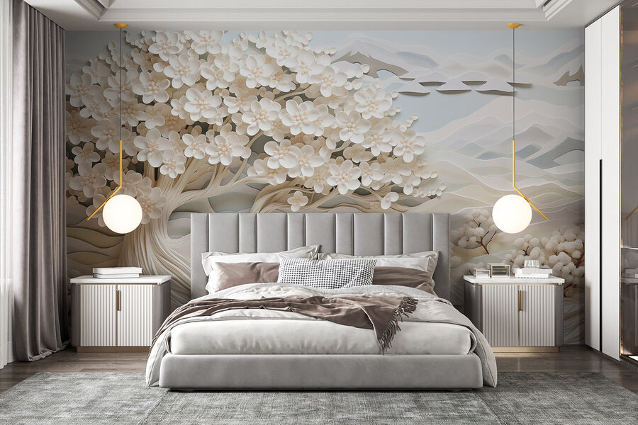 Premeňte akýkoľvek priestor na pokojné útočisko s nástennou maľbou „Biely strom s bielymi kvetmi a riekou“. Predstavte si, že vstúpite do sveta, kde šepkajúce okvetné lístky a jemné vodné toky sú na dosah ruky. Táto nástenná maľba s jemnými odtieňmi a zložitými detailmi vyvoláva sny a pokojné chvíle. Je to ako priniesť kúsok prírody dovnútra – ideálne pre každého, kto miluje dotyk pokoja. Či už je to v útulnom kútiku na čítanie alebo v živom obývačke, táto nástenná maľba sľubuje, že bude podnetom na konverzáciu a každodennou pripomienkou krásy. Navyše, kto by nechcel predstierať, že žije pri pokojnej rieke?