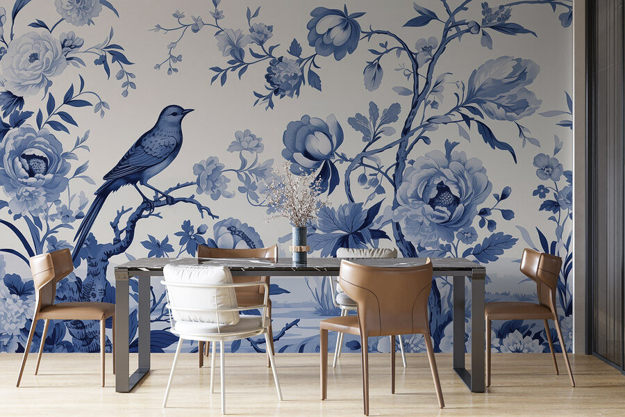Premeňte obyčajnú stenu na rozprávkové útočisko s touto krásnou nástennou maľbou vtáka posadeného na konári stromu, obklopeného jemnými kvetmi. Je to ako pozvať do svojho domova jemný vánok. Predstavte si, ako popíjate rannú kávu a cítite sa ako v pokojnej záhrade, kde upokojujúce modré farby a nádherný akvarelový štýl zjemňujú atmosféru miestnosti. Táto nástenná maľba nie je len dekoráciou, je to podnet na rozhovor, chvíľka na zastavenie sa a vychutnanie si malých zázrakov života. Je ideálna do útulného kútika alebo na stenu, ktorá potrebuje trochu lásky, a prináša okamžitú teplo a šarm. Vaše steny vám budú vďačné!